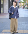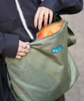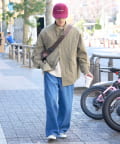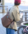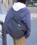 ナイロンの軽やかな素材感がカジュアルコーデにフィット。