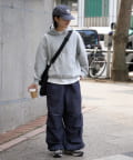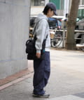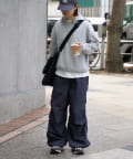 コンパクトトップスでまとめるのも、パンツのボリューム感が引き立ちおすすめです。