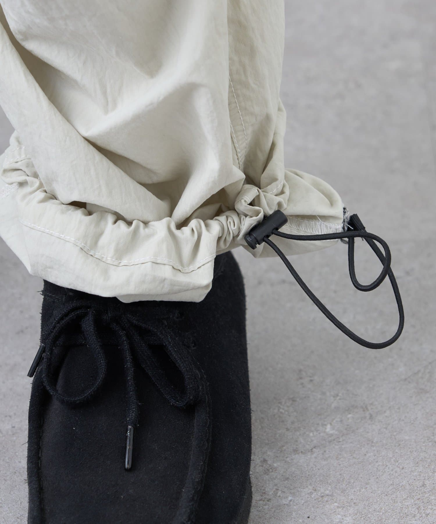 裾にはドローコードを備えており、絞ることでシルエットや丈感の調整が可能。