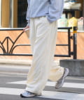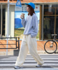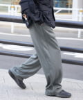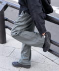 裾を絞れる仕様でシルエット調整が可能なので、スニーカーだけでなく、サンダルやローファーとも相性抜群。