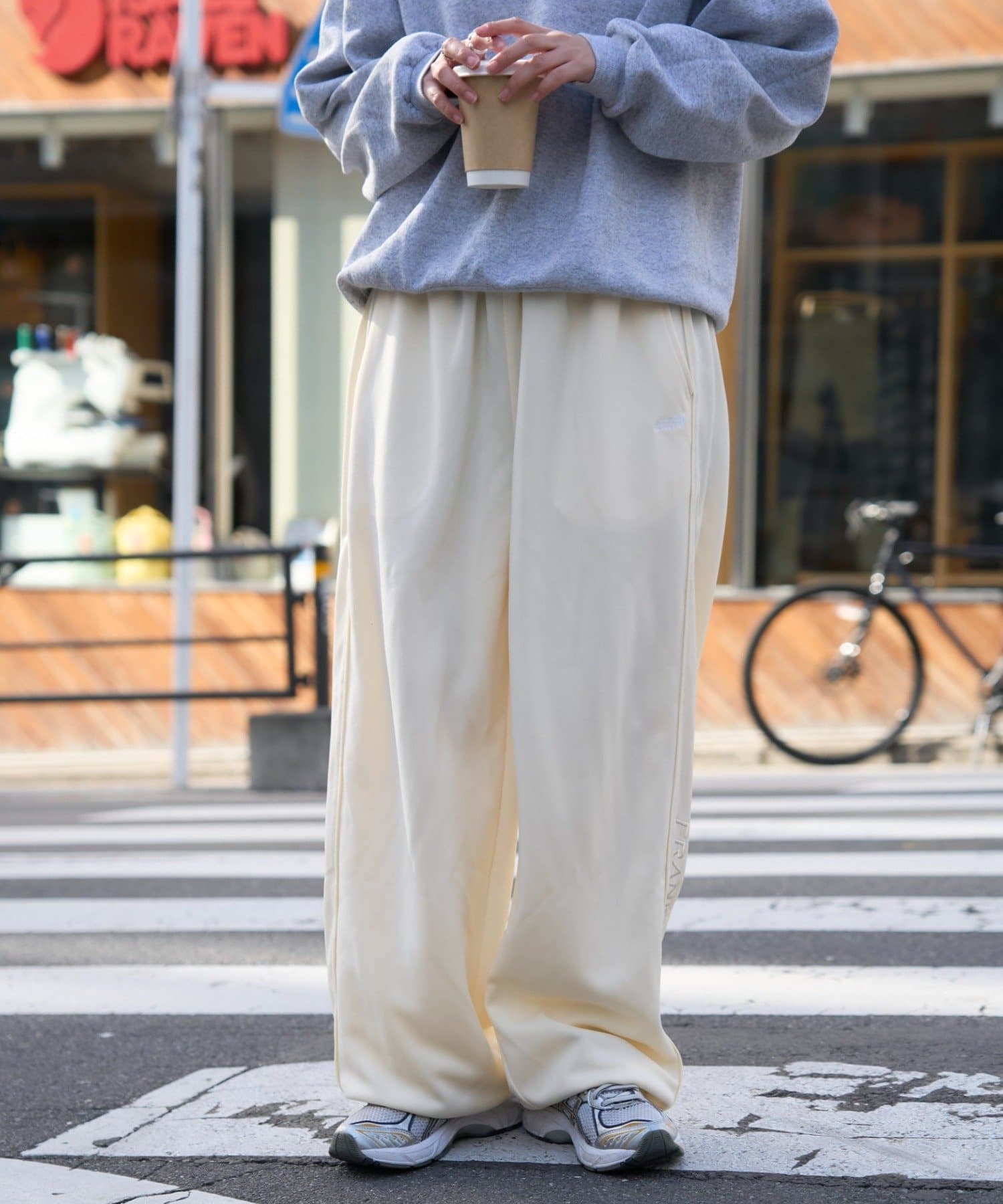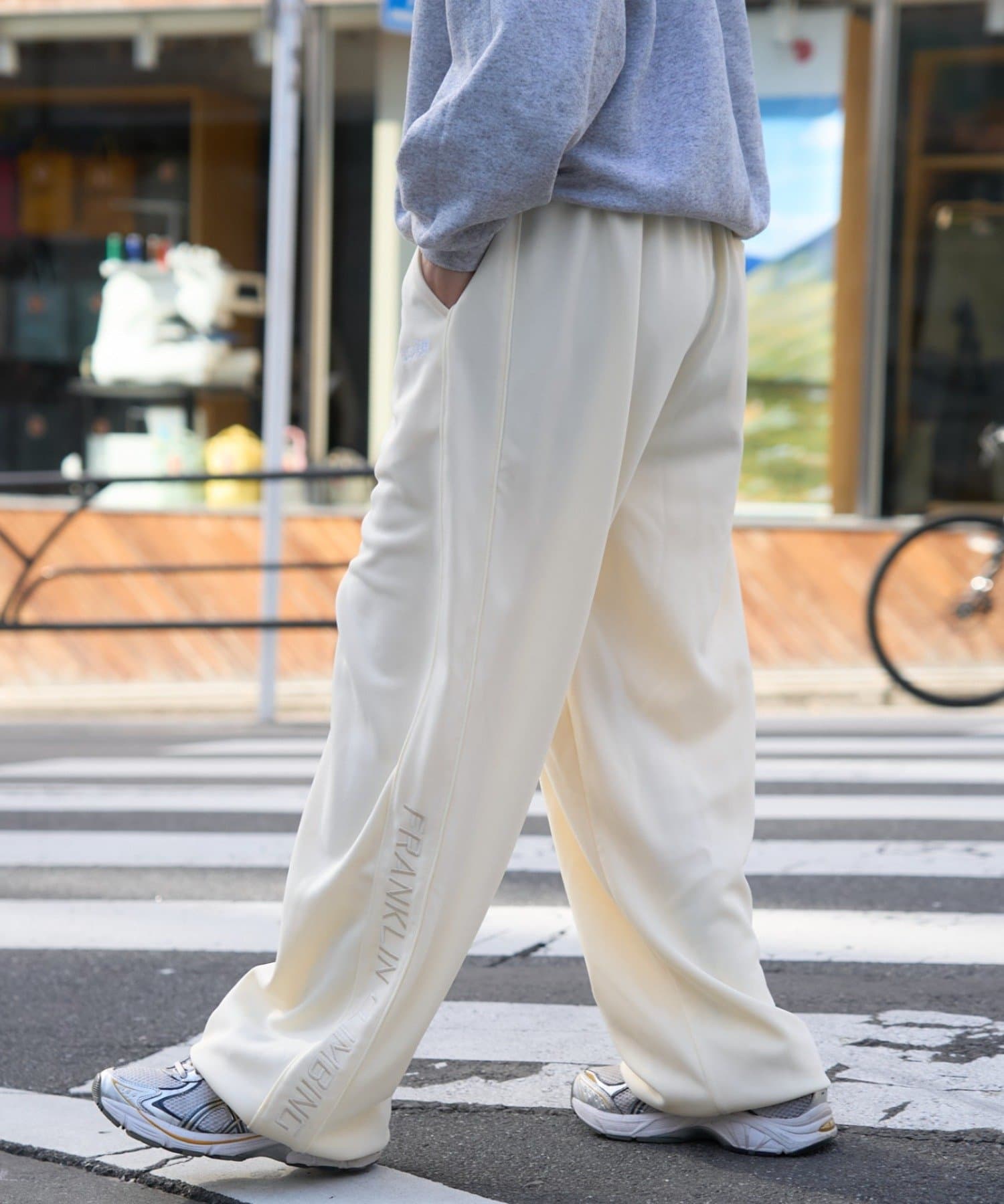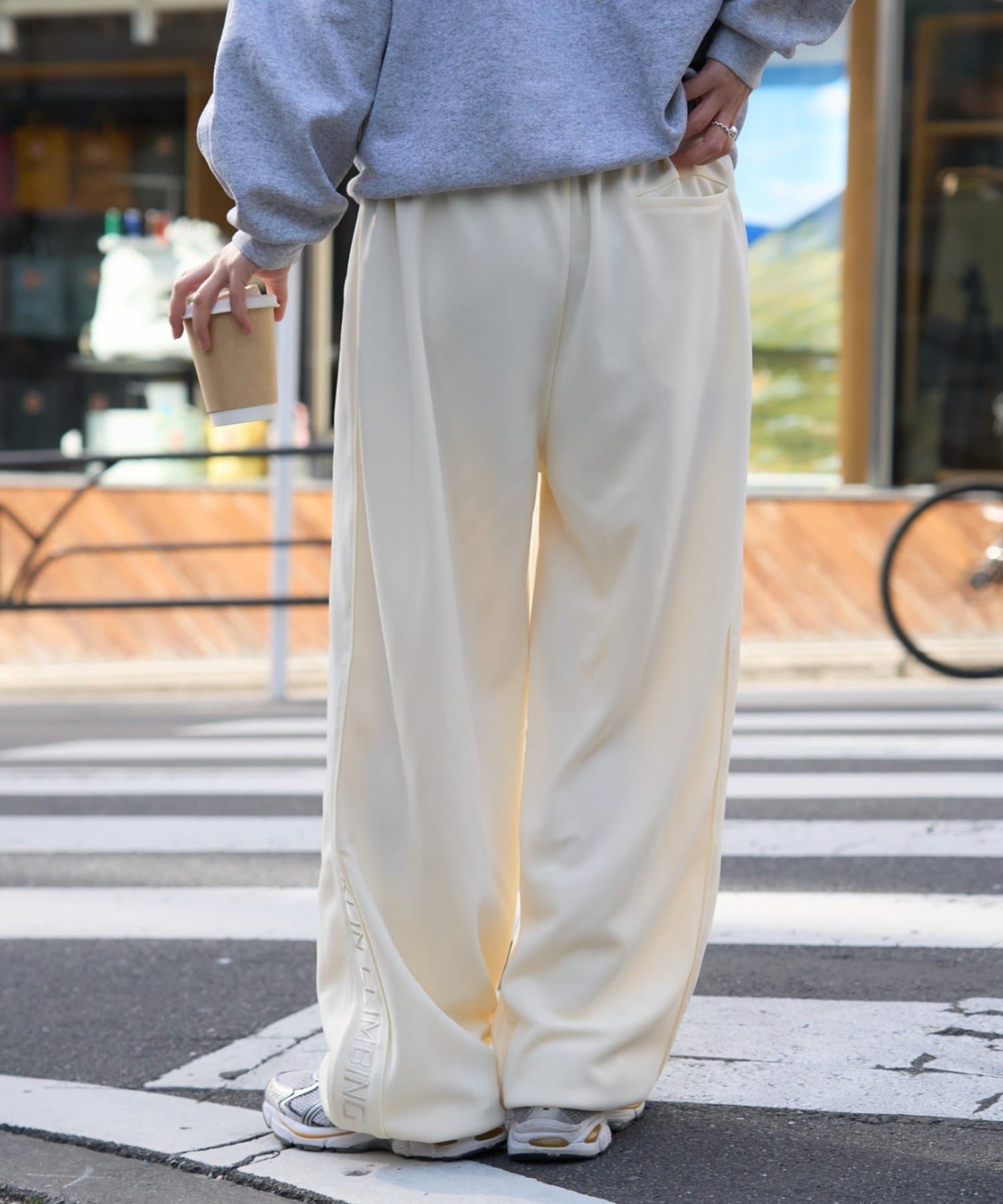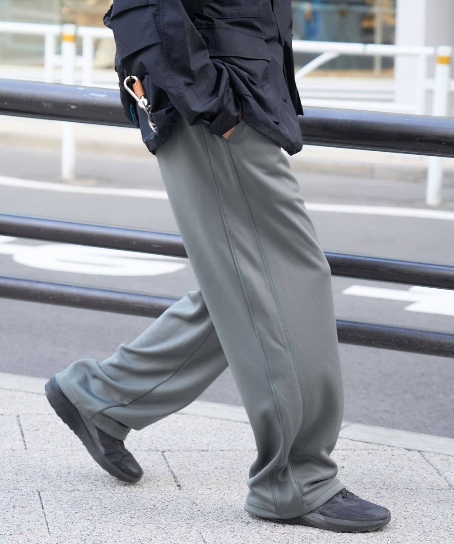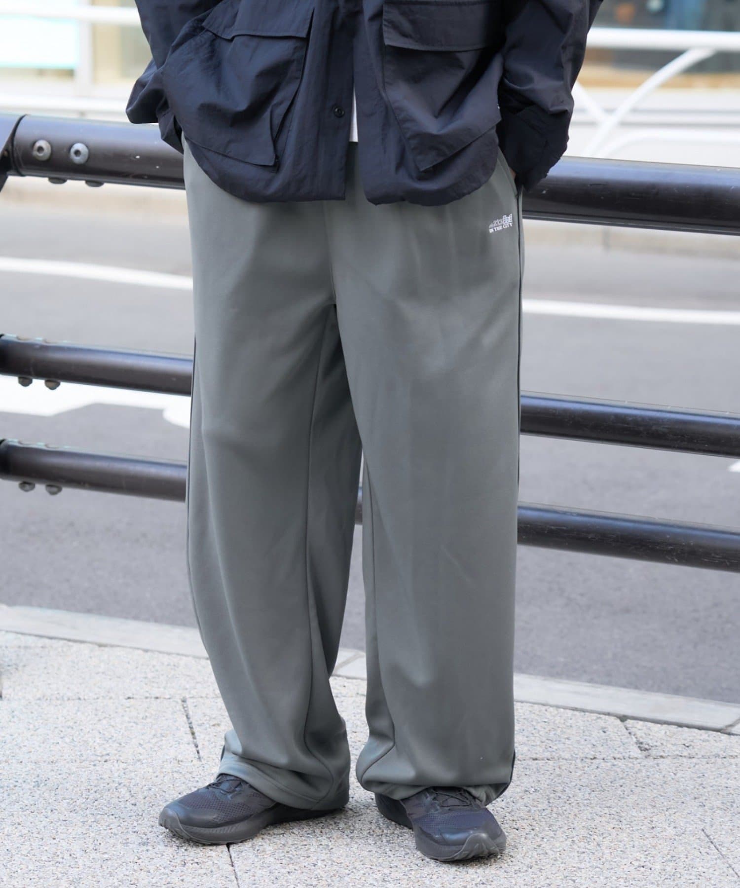 トラックパンツにトレンドシティ感をプラス!