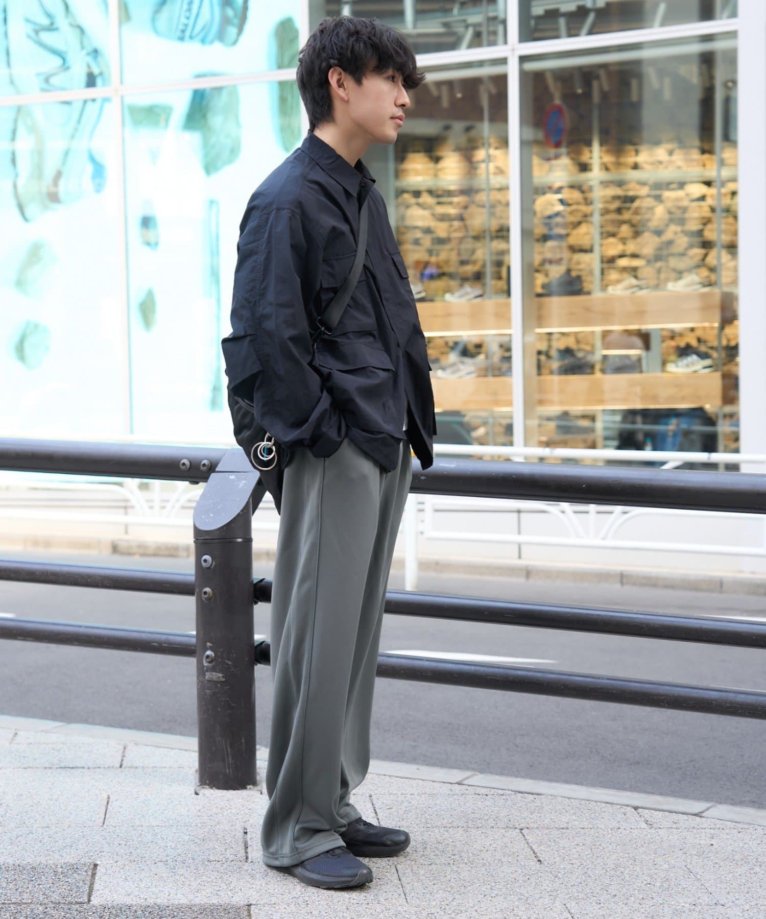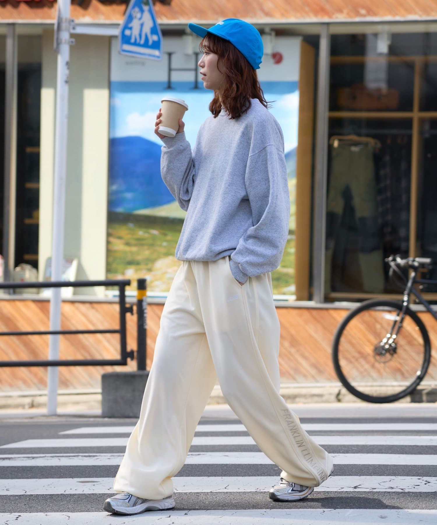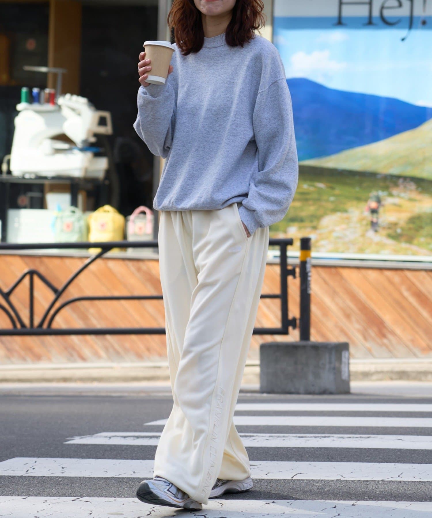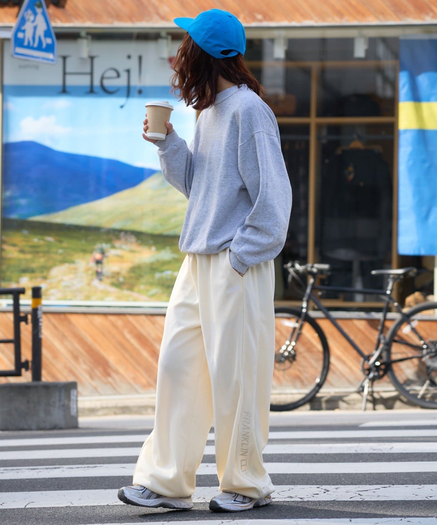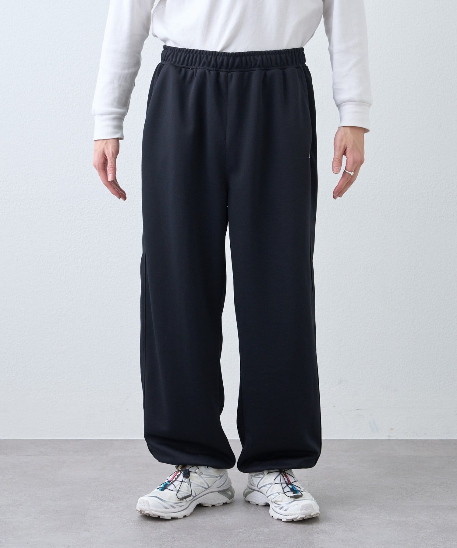スニーカーに被せたり、足元をすっきり見せたりと、スタイリングに合わせて調整できます。