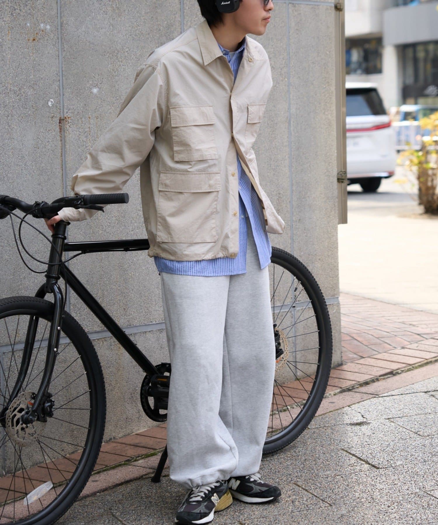 ゆったりとした着用感で、インナーにスウェットやニットを重ねてももたつきにくく、長いシーズン活躍します。