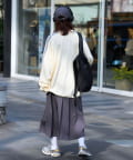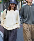 ユニセックスで着用できるため、女性がオーバーサイズで着こなすのもおすすめです。