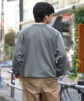 首元はベーシックなクルーネック仕様で、インナーを選ばず着回しやすいデザイン。