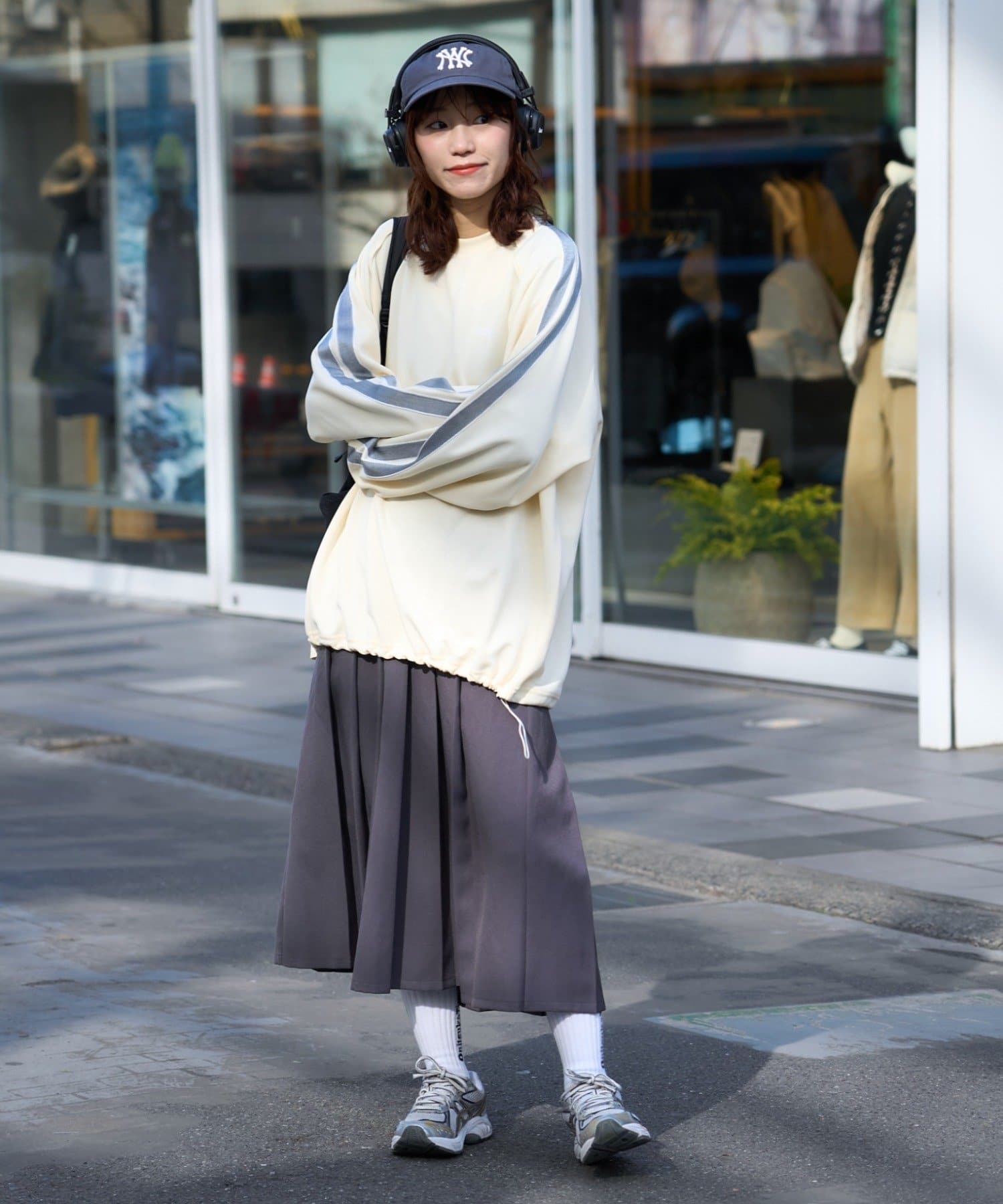 女性はワイドパンツやロングスカートと合わせて、あえて外した着こなしも楽しめます。