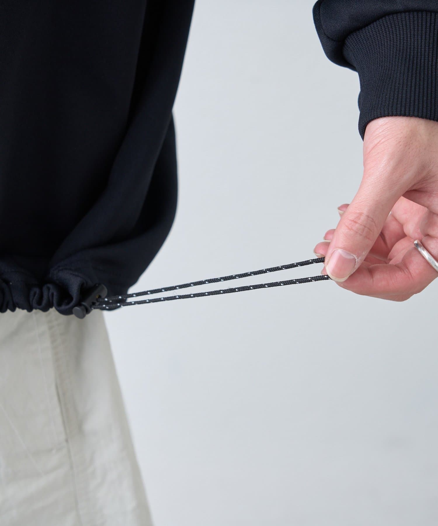 裾のドローコードを絞って、シルエットに変化をつけるのもおすすめ。
