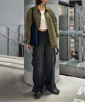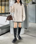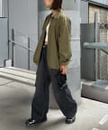 スウェットやニットの上から着ても余裕のあるほどよいゆとりのあるサイズ感で
