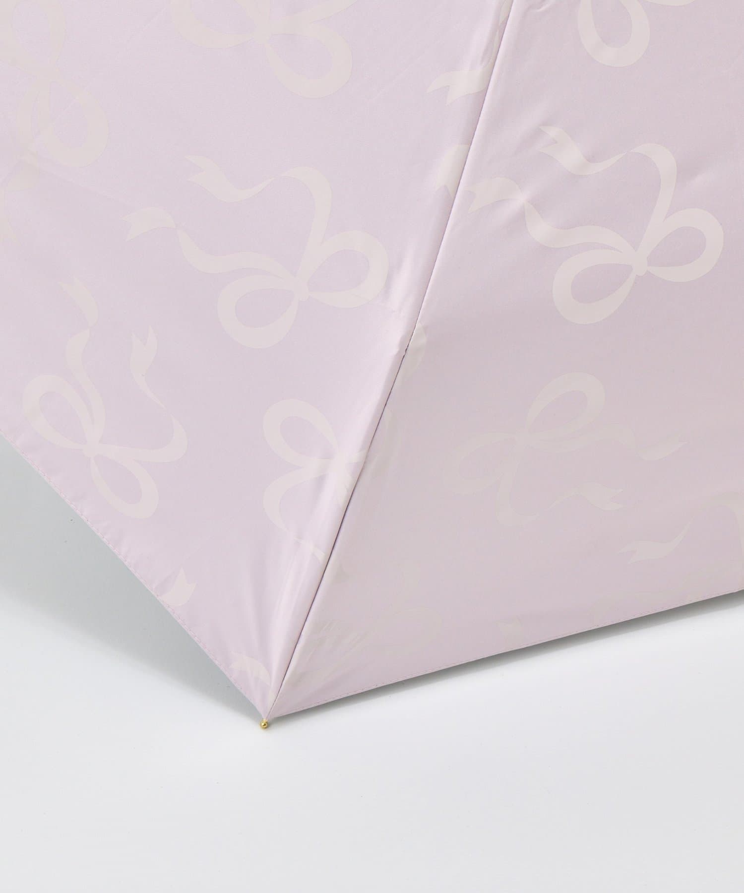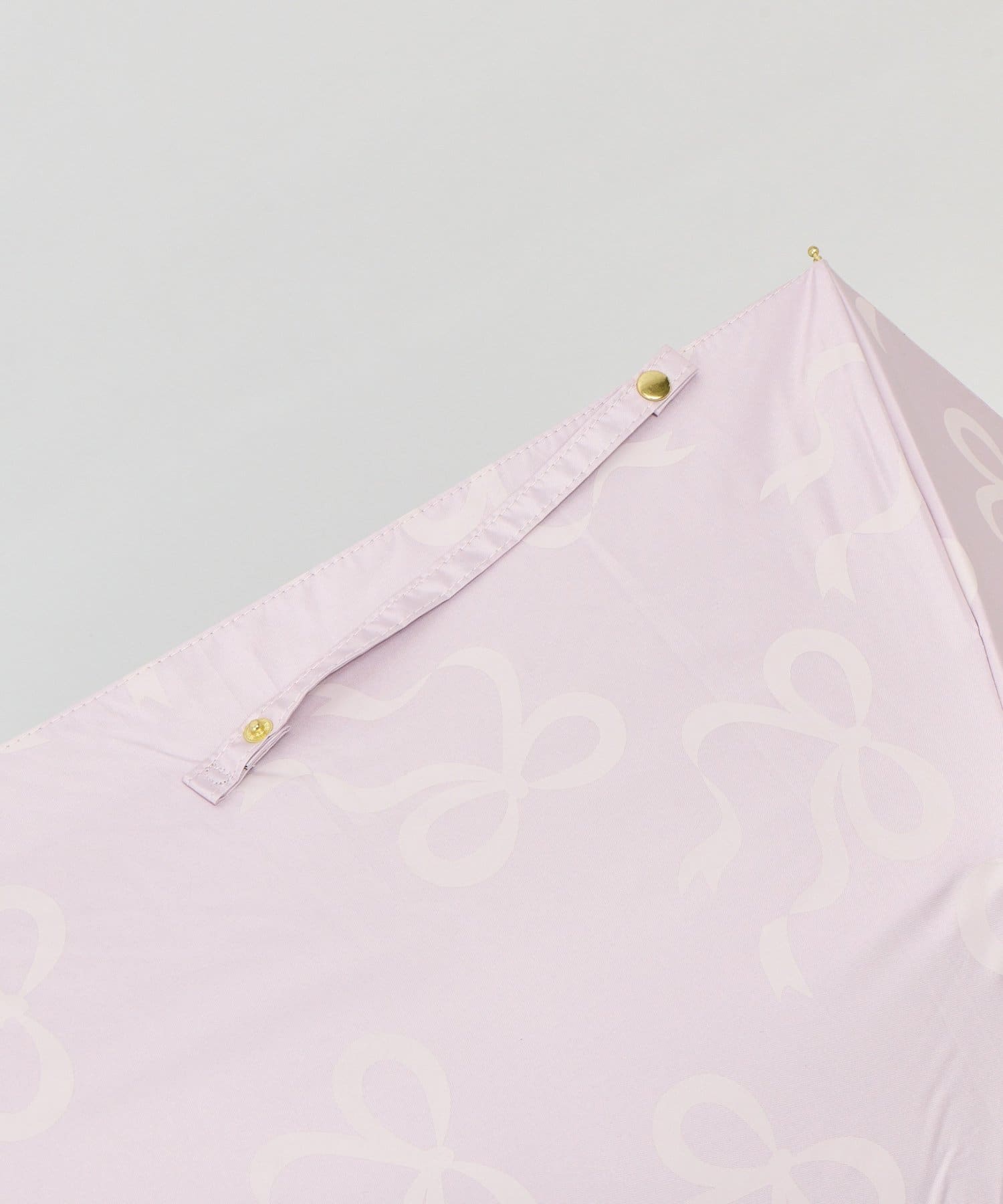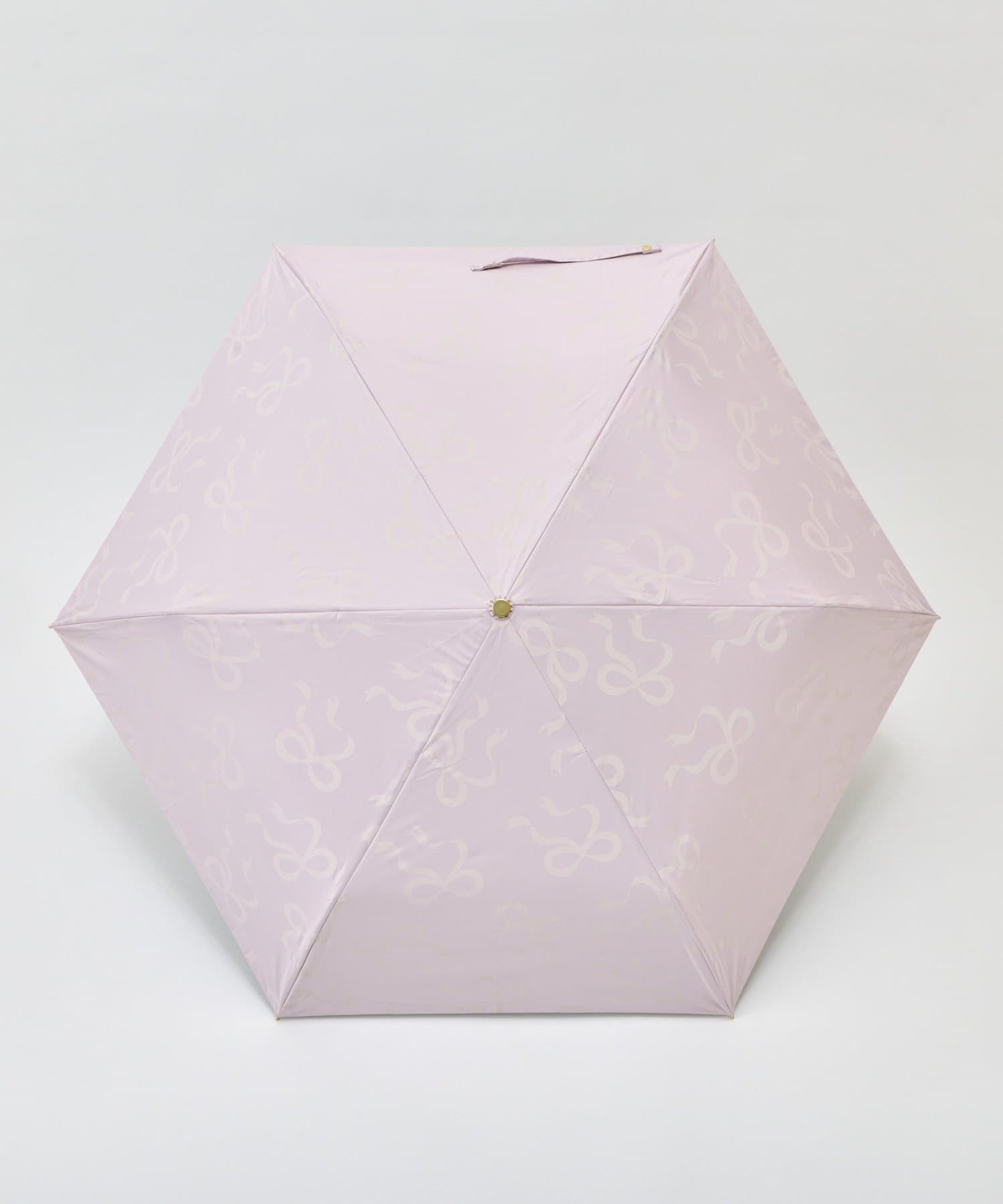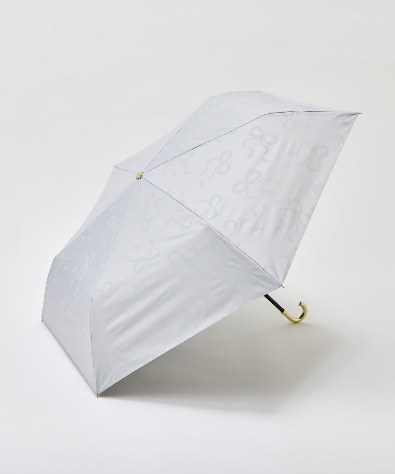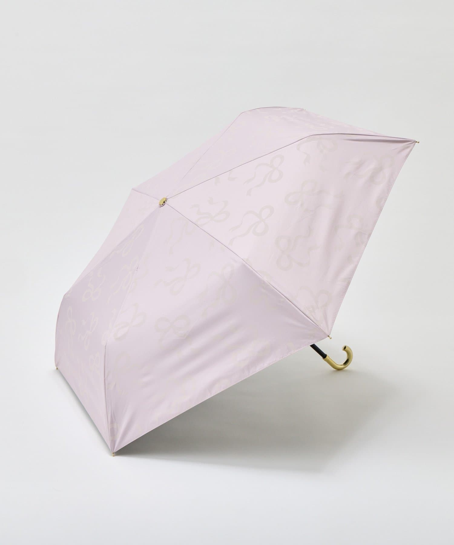 傘全体に施されたリボン柄が、さりげなくフェミニンで上品な印象を演出します。