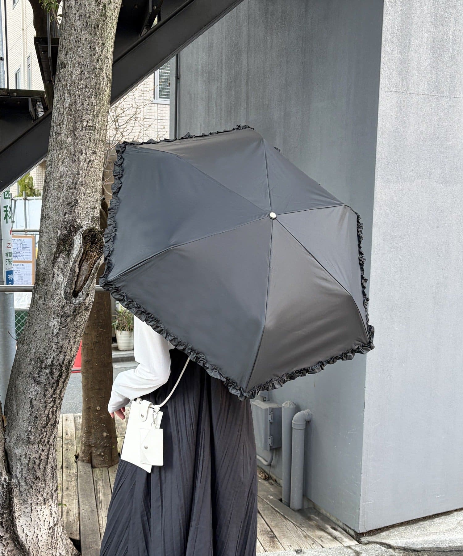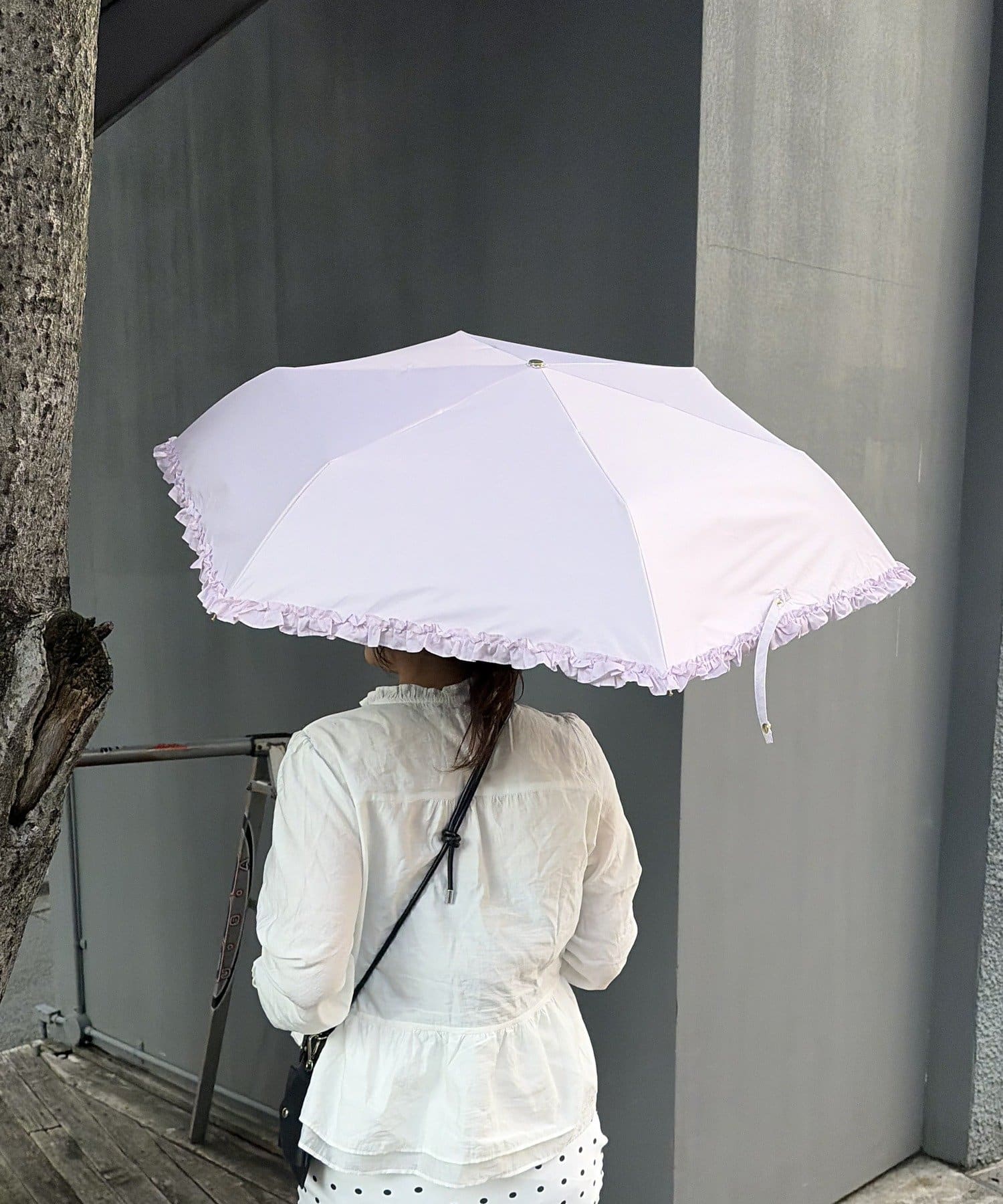 傘の縁をぐるりと囲む、さりげないフリルデザインがポイント。