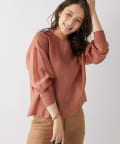 着心地:シアーなブラウスですが透け感も少ないです。軽さもありお袖がゴムなのでたくしあげた時のさり気ないボリューム感もポイントです。