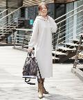 ドロップショルダーのゆったりとしたデザインが女性らしい着こなしを演出します。