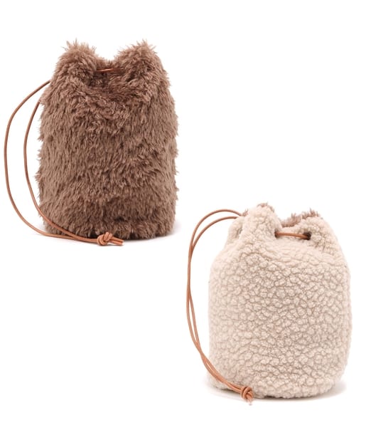 素材感:フワフワとした柔らかな素材のボアバッグです。両面でご利用いただける2WAYタイプとなっており、それぞれが色の違いだけではなくボアの風合いが異なる為、雰囲気が変わって2度楽しめると思います。