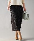リーフ柄レースのロングスカート。