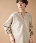 首元はクルーにV字カットを入れた形になっており、デコルテをキレイに見せてくれる女性らしいデザイン。