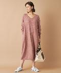 【《柔らかな風合いが女性らしい》手洗い可】Vネックニットワンピース