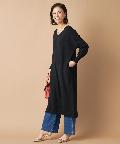 サイズ感:程よくゆとりのあるサイズ感ですが、首元のVネックや袖口のリブですっきり見えします。着丈はふくらはぎにかかる程度。