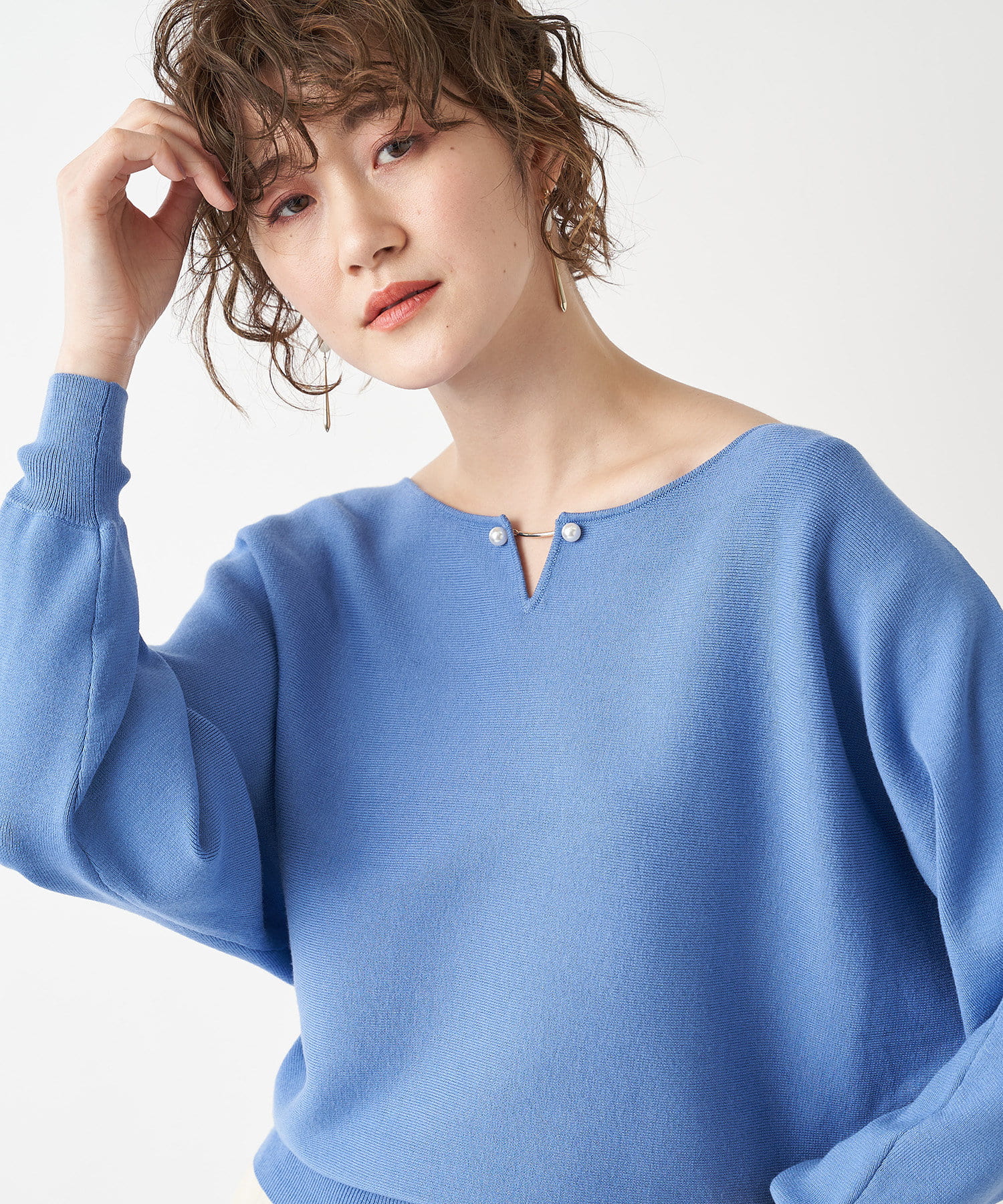 大きめパールがアクセント、華やかに見せてくれる着映えニット