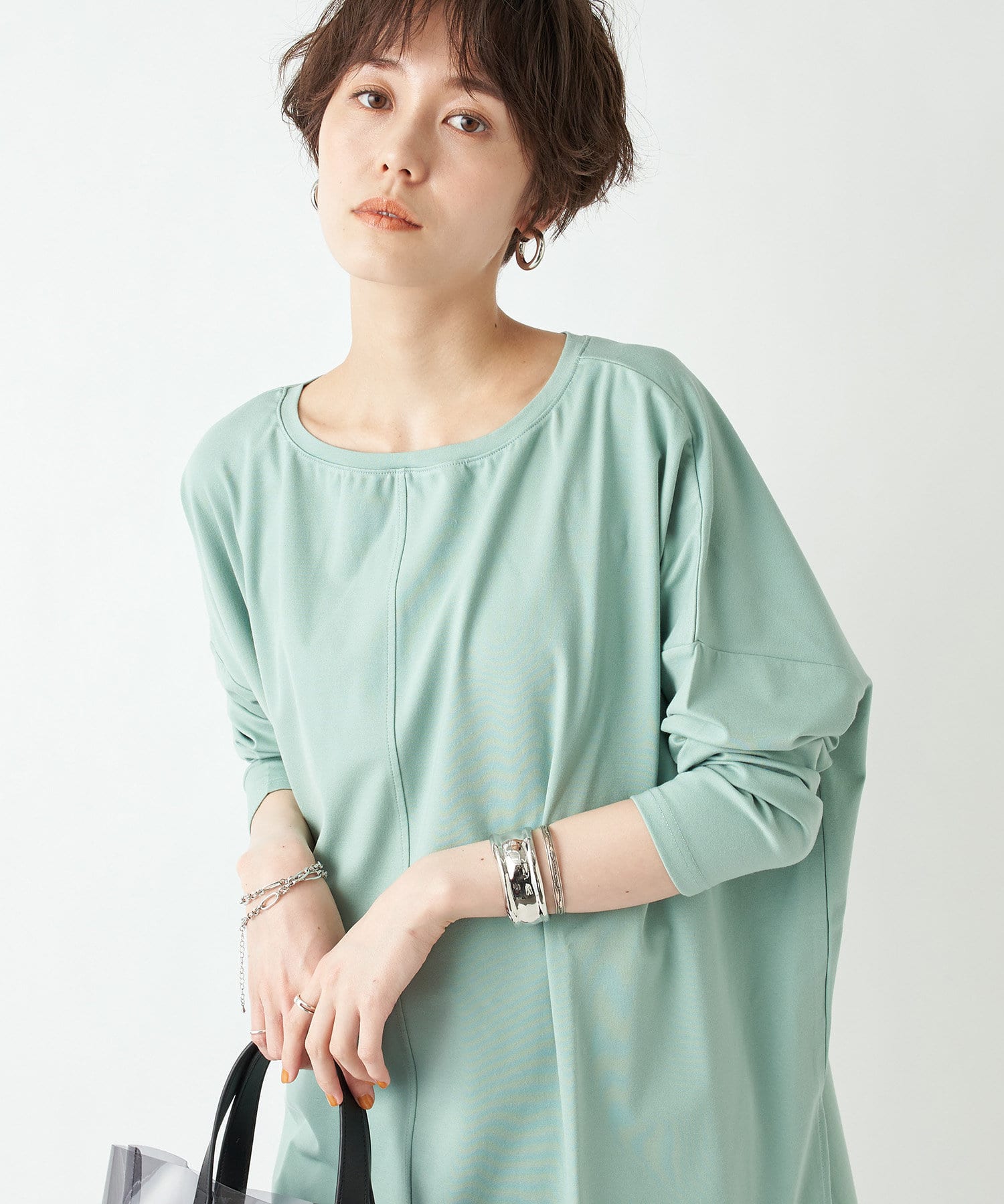 着丈は長めなのでデニム等を合わせたパンツスタイルがおすすめ。