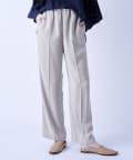 足のラインがスッキリ美脚に見えるよう正面にはセンタープレスを入れており、イージーパンツなのにオフィスでもきちんと見えする優れもの。