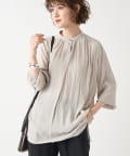 un dix cors(アンディコール) 動画付き【《デイリーに使いやすい》洗える】パウダーサテンスタンドカラーブラウス