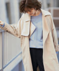 着心地:かっちりとしすぎないデザインのため、トレンチ風でも堅苦しくなく着られます。パンツスタイルももちろんですが、ゆるっとスカートなどとの相性も良いです。
