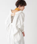 正面はシンプルなシャツワンピースですが、バックデザインにねじりデザインやリボンを付けたことで大人の遊びワンピースに仕上げました。