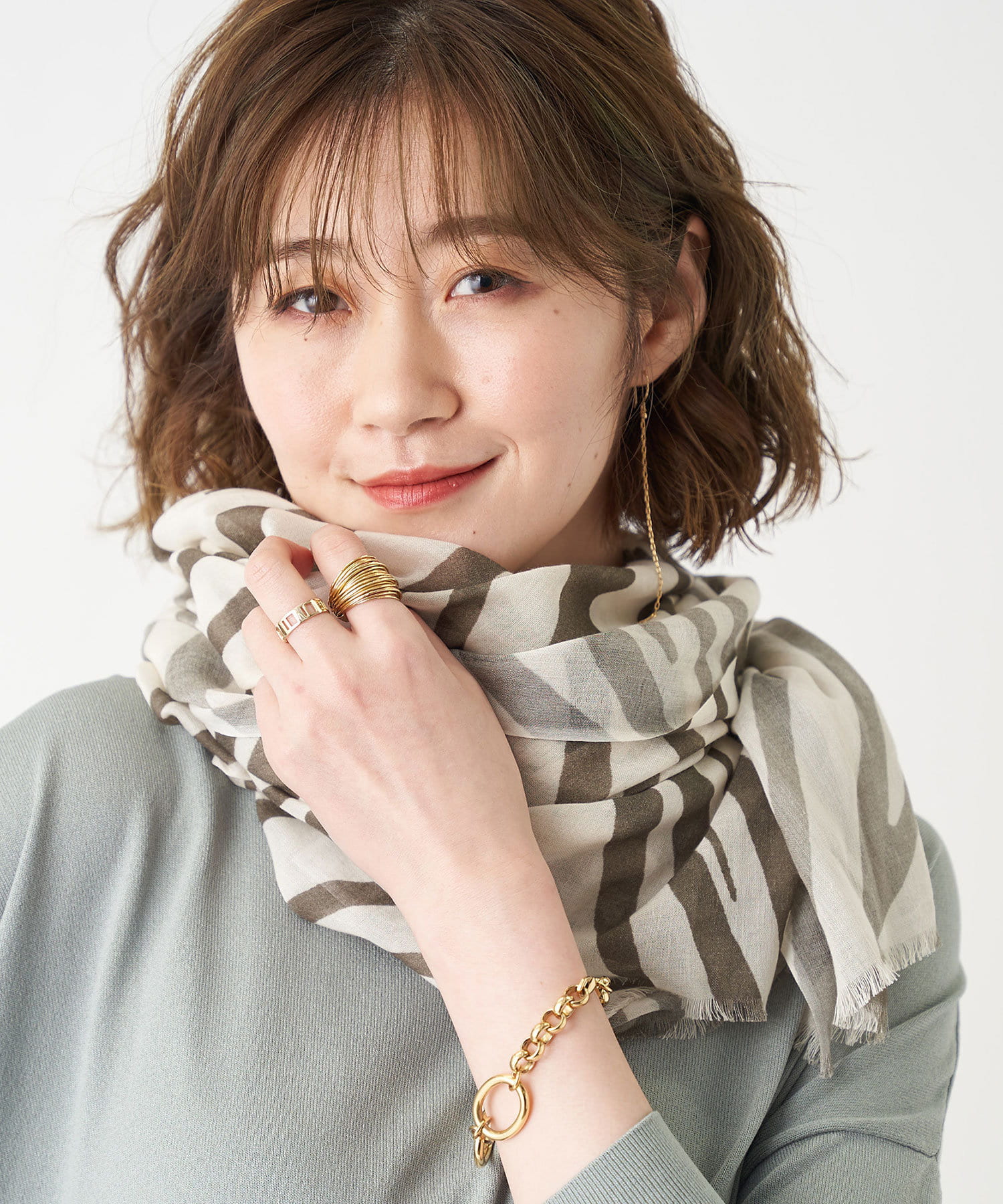 大きめなゼブラ柄がアクセントになる、夏まで使える便利なストール