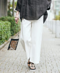 脚のラインを拾わず、きれいにスタイル良く見せてくれるワイドパンツ。