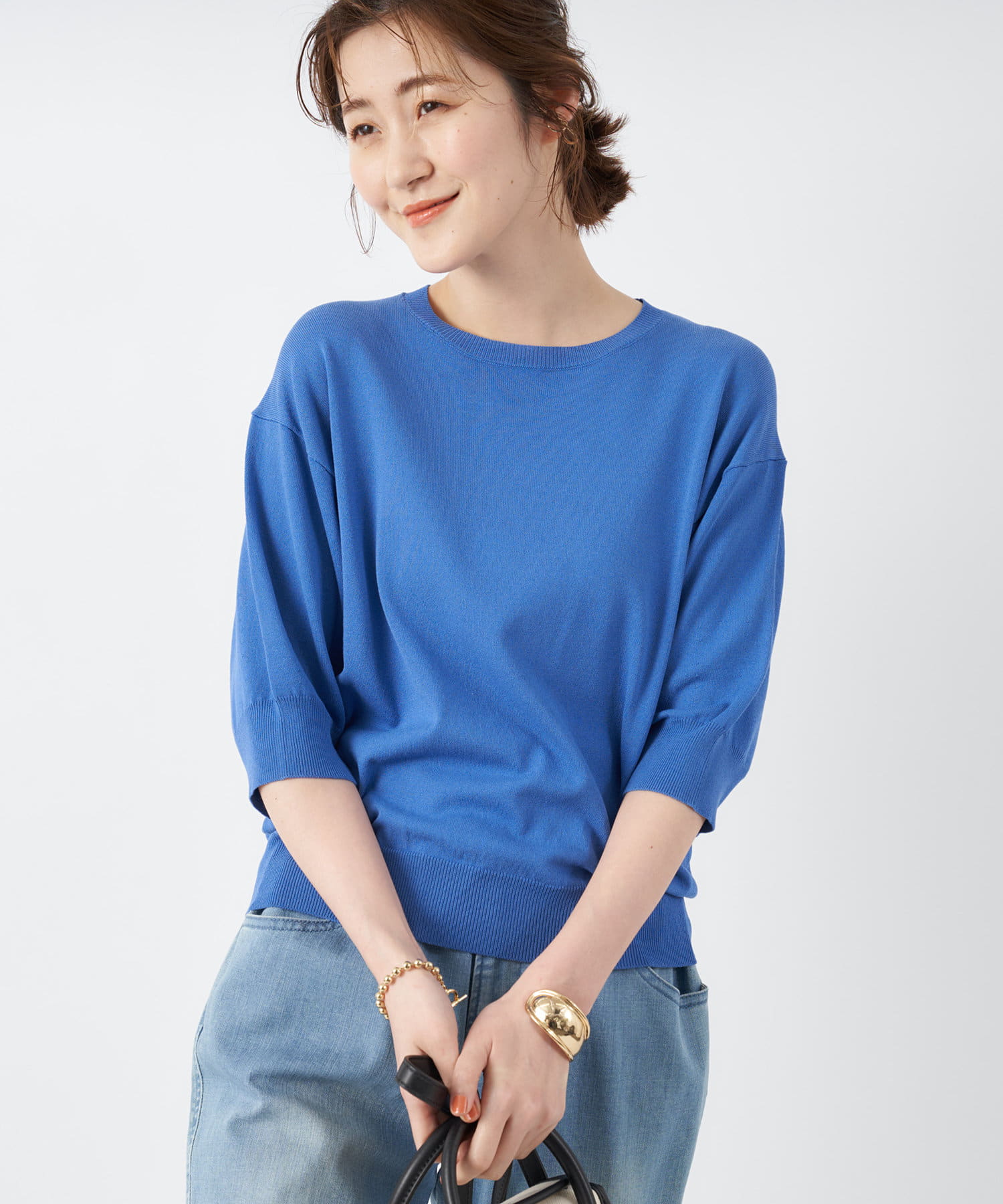 #大人カジュアル#きれいめカジュアル#ベーシック#無地#オフィスカジュアル#半袖#定番#デイリーユース#シンプル#着回し#通勤コーデ#ニット#今買いアイテム#KEYITEM#ウォッシャブル#ストレスフリー