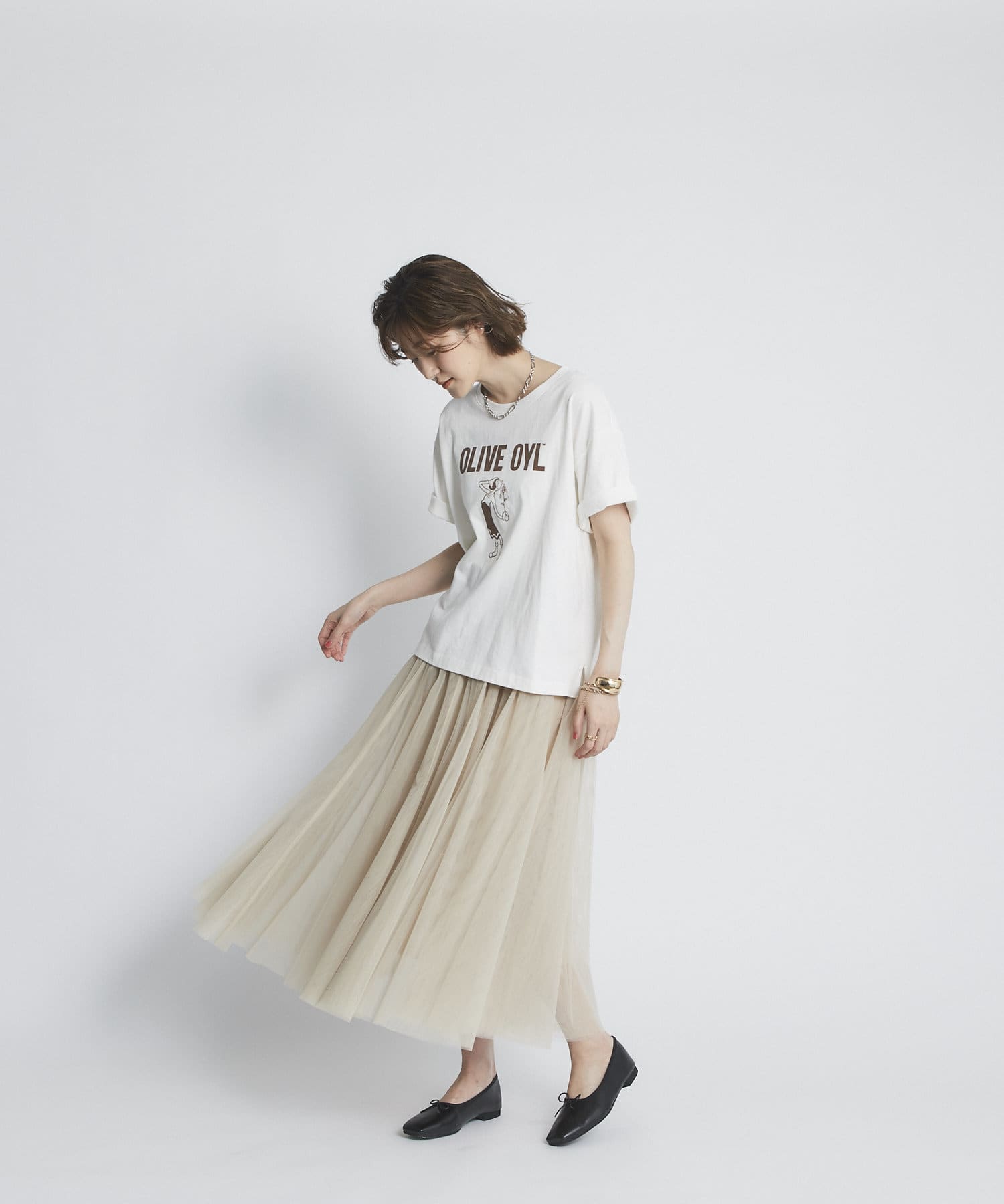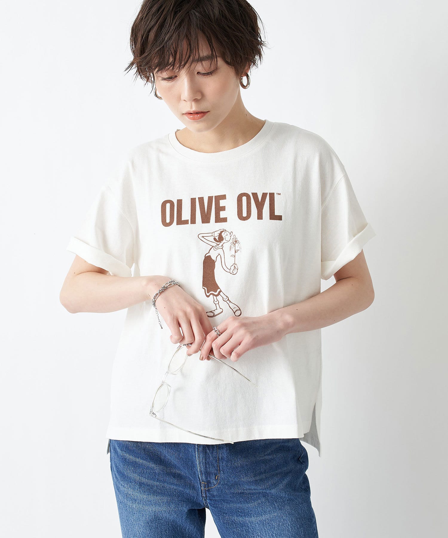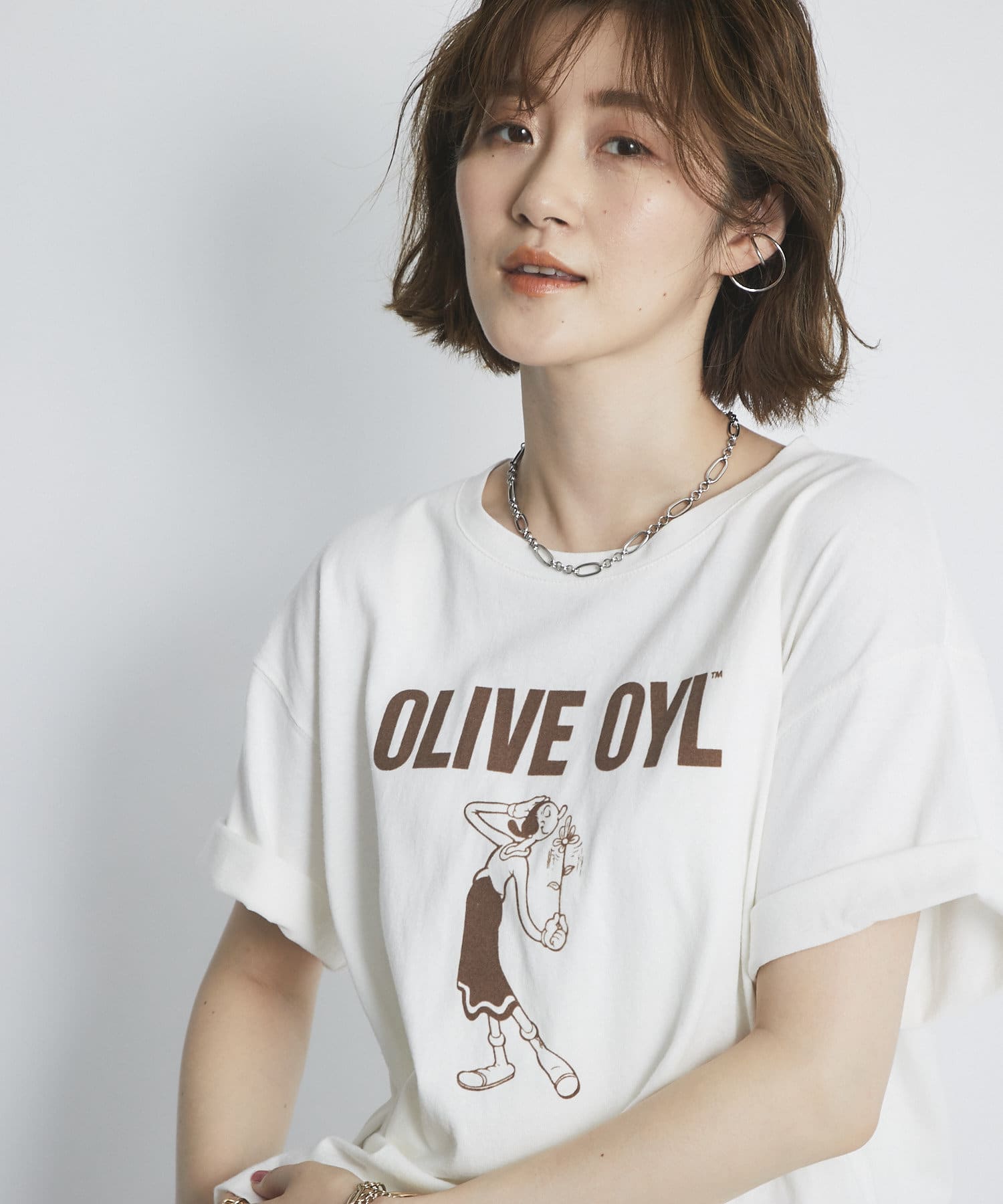 素材感:綿100%の柔らかい素材感。ヴィンテージっぽい生地感が、長年愛されているPOPEYEのキャラクターであるOLIVEのモチーフと相まり、こなれた印象に。