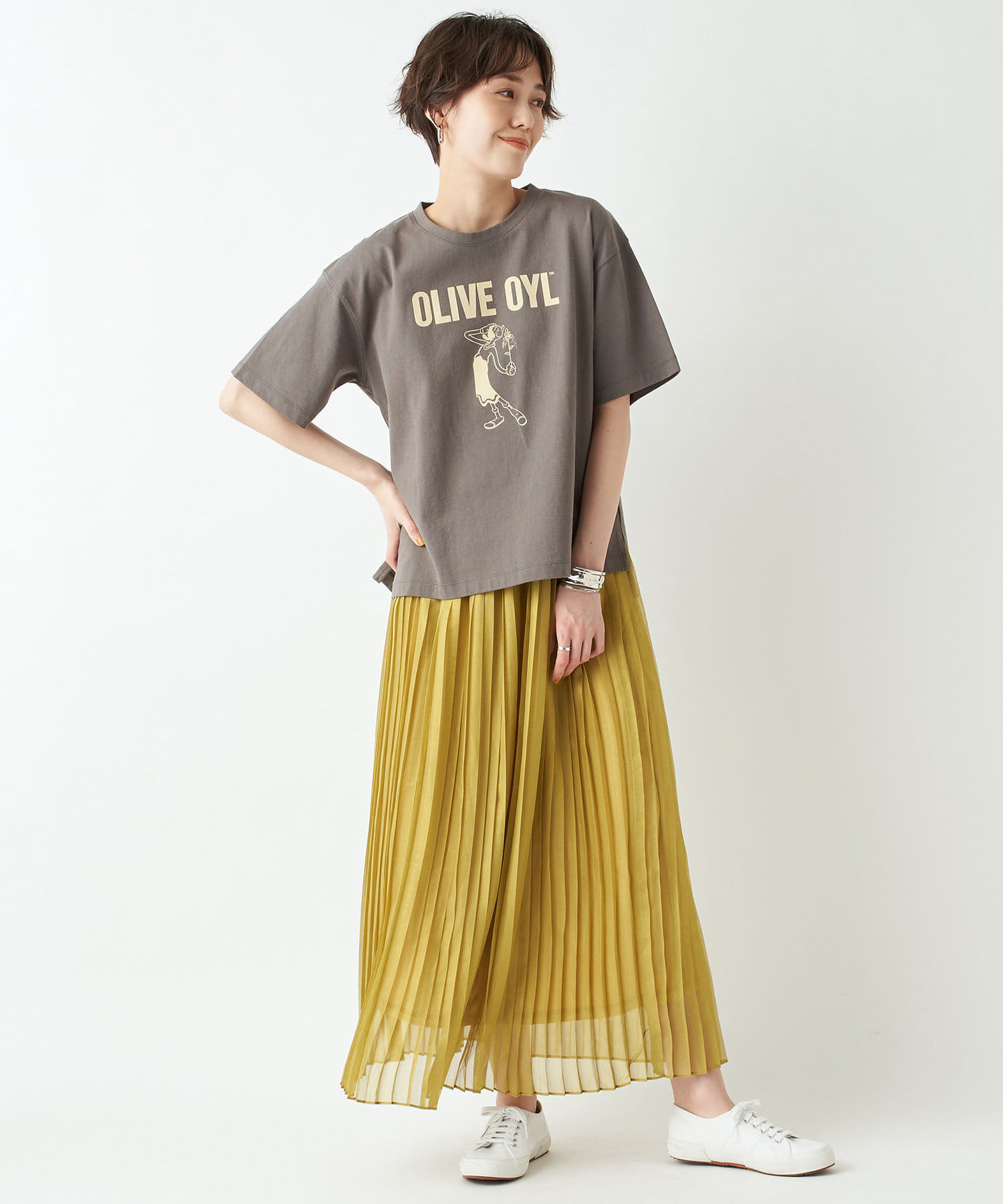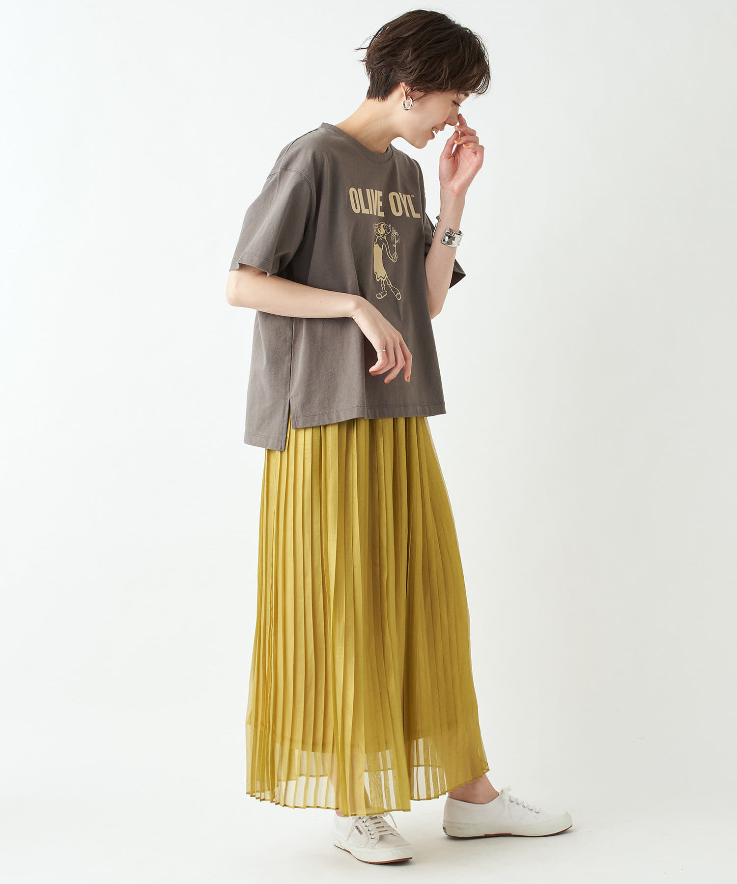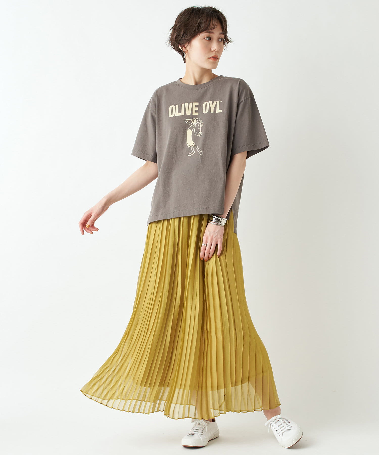 素材感:綿100%の柔らかい素材感。ヴィンテージっぽい生地感が、長年愛されているPOPEYEのキャラクターであるOLIVEのモチーフと相まり、こなれた印象に。