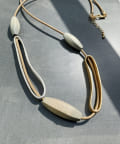 様々な形のビーズを取り入れたこだわりのネックレスは、スタイリングに取り入れるだけで華やかな印象を楽しめるデザインです。