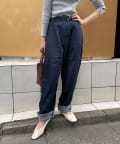 ハイウエストで脚長効果も期待できるワイドテーパードデニム。