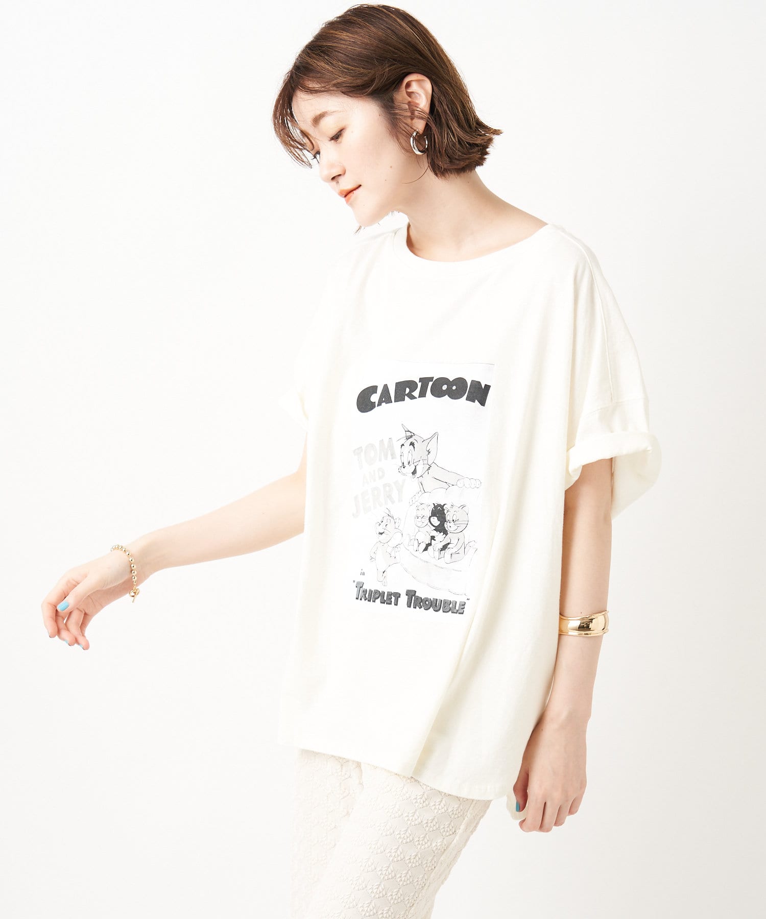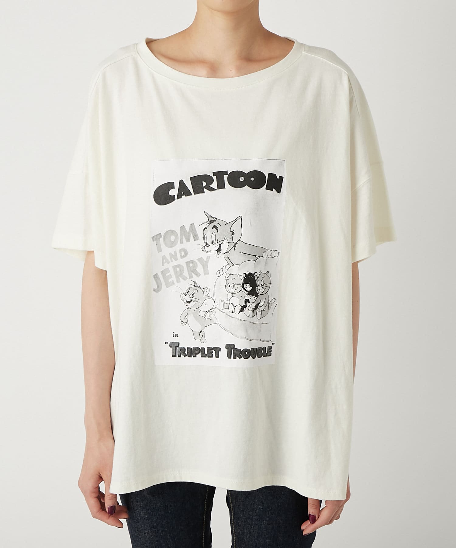 #printed_tee #ビックTシャツ#今買いアイム#大人カジュアル#シンプル#トレンドアイテム#リラックス#お出かけコーデ#ミドル丈#クルーネック#リラックス#プリントT#半袖#カジュアルコーデ#デイリーユース#ストレスフリー#トムとジェリー#白ロゴT
