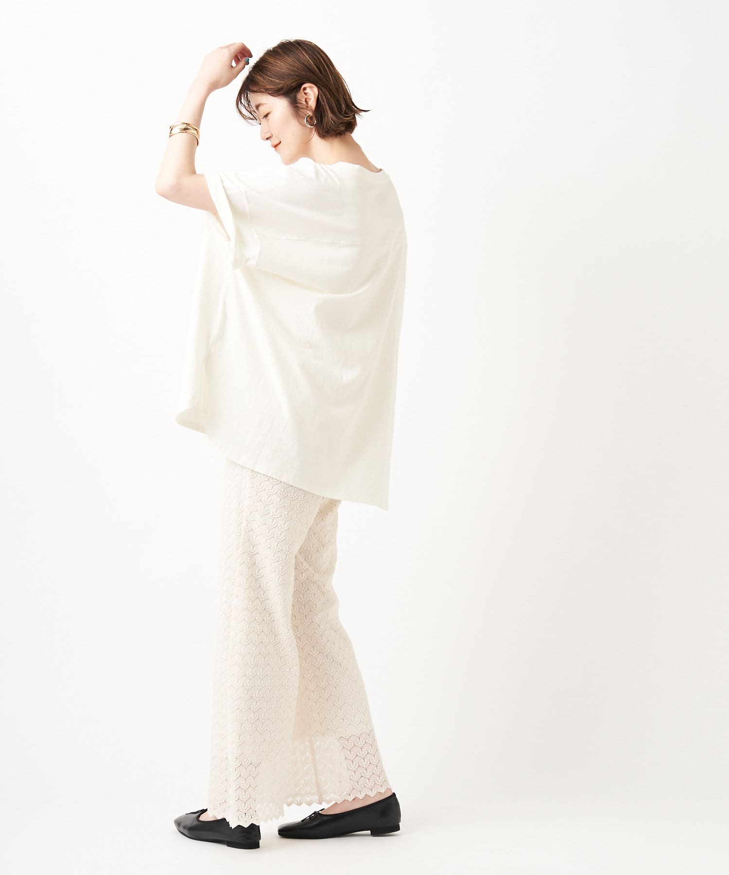 裾はラウンドシルエットに仕上げ、女性らしいシルエットでスタイリングできます。