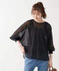 トレンドのシアー素材を使ったゆとりのあるドルマンブラウス。