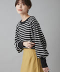 着心地:季節の変わり目に使いやすいです。定番ボーダーもボリューム感のある袖でトレンド感が出ます。