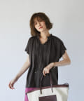 着心地:窮屈感なく着れるサイジングでお仕事にも着やすいアイテムです。フレンチスリーブで二の腕もカバーしてくれます。