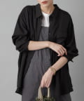 カジュアルになり過ぎないよう、とろみ素材を使用した大人っぽいミリタリーシャツ。