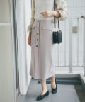 フロントボタンのデザインに、アクセントになる縁取りを施したスカート。