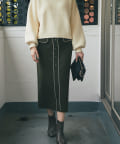 un dix cors(アンディコール) 【縦ラインでスタイルアップ】ジャージメルトンパイピングナロースカート