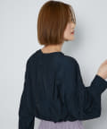 袖や首元にギャザーがあり、ちょっとしたポイントになってます。インスタイルでもアウトスタイルでも着れるブラウスです。