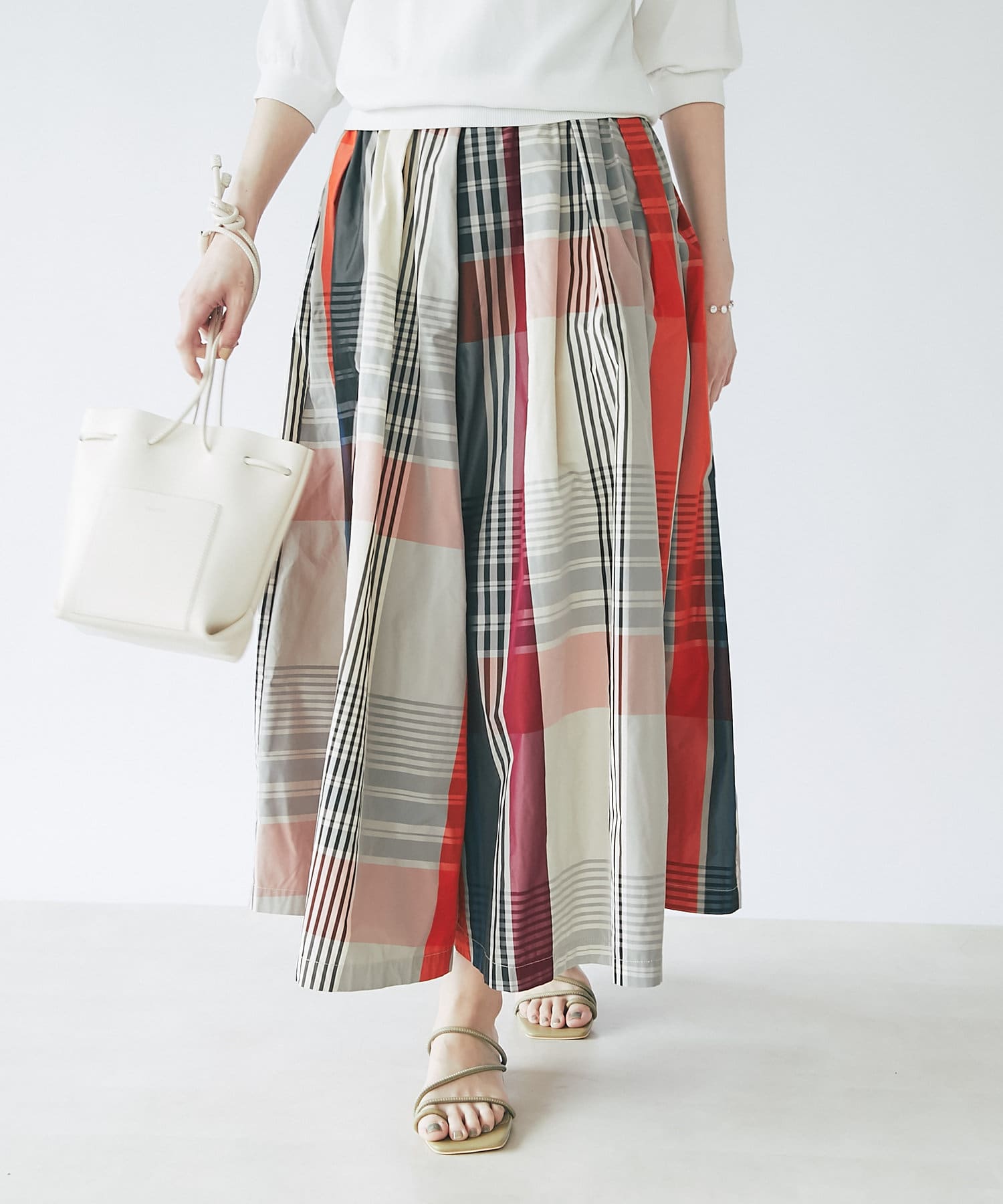 #高級感#きれいめカジュアル#大人カジュアル#エレガント#ロング丈#ウエストゴム#ベーシック#今買いアイテム#上品#高見えコーデ#華ボトム#ロングスカート#プリーツスカート#柄スカート#カラースカート#きれいめスカート#華やぎスカート#ロンスカ#チェック#チェックスカート#大人シンプル#夏服#高見え#高見えコーデ