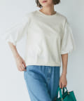 袖ボリュームでも半袖なので着膨れすることなく着れます。1枚で着映えするアイテムなのでシンプルなボトムスと合わせるだけでコーディネートが完成します。