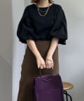 ハリのある素材なのでボリューム袖のシルエットが綺麗です。異素材MIXなのでシンプルながらお洒落に着こなせる一枚となっています。腰丈なのでどんなボトムスとも合わせやすいです◎