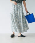 【リゾートムードが高まる】リーフ柄2段ティアードスカート