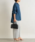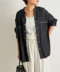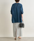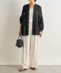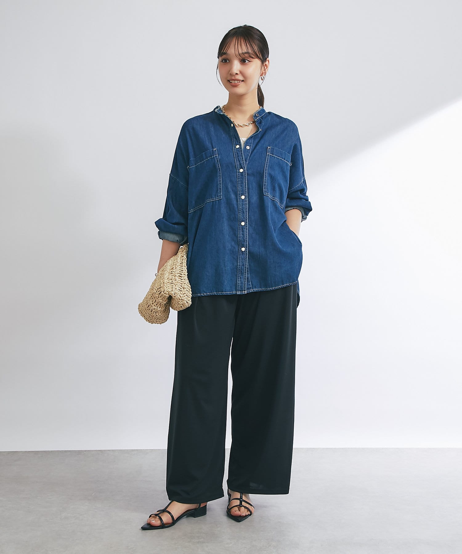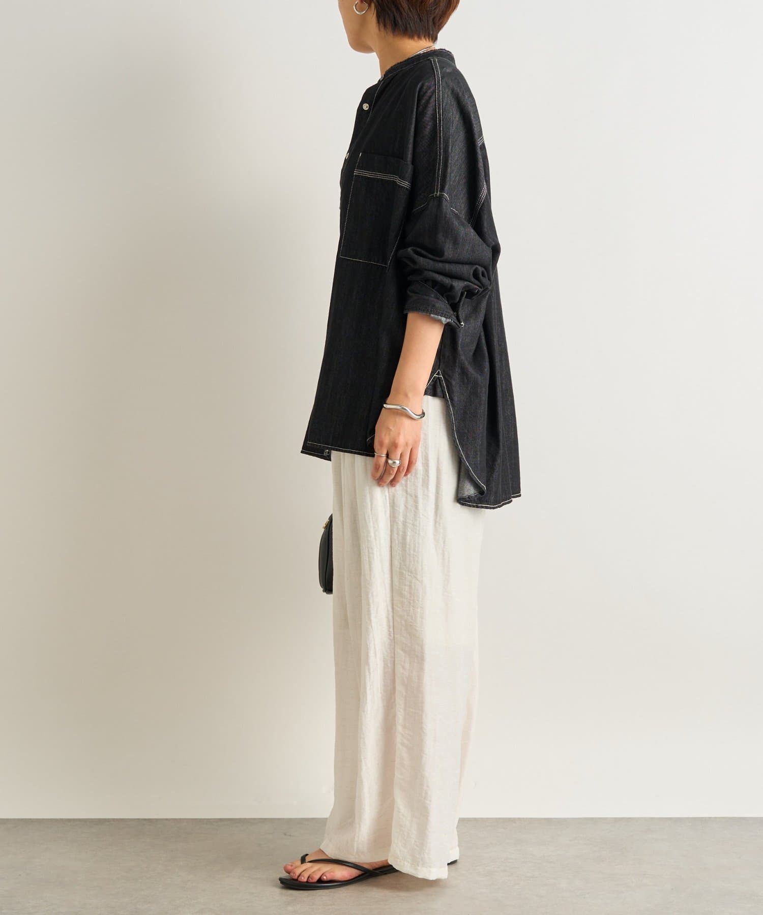 ・バンドカラーの襟元が顔周りを華やかに演出し、スタイリングのアクセントに◎