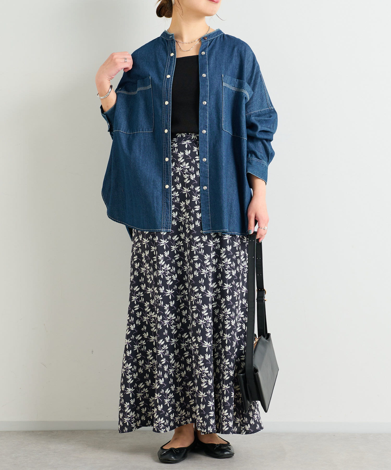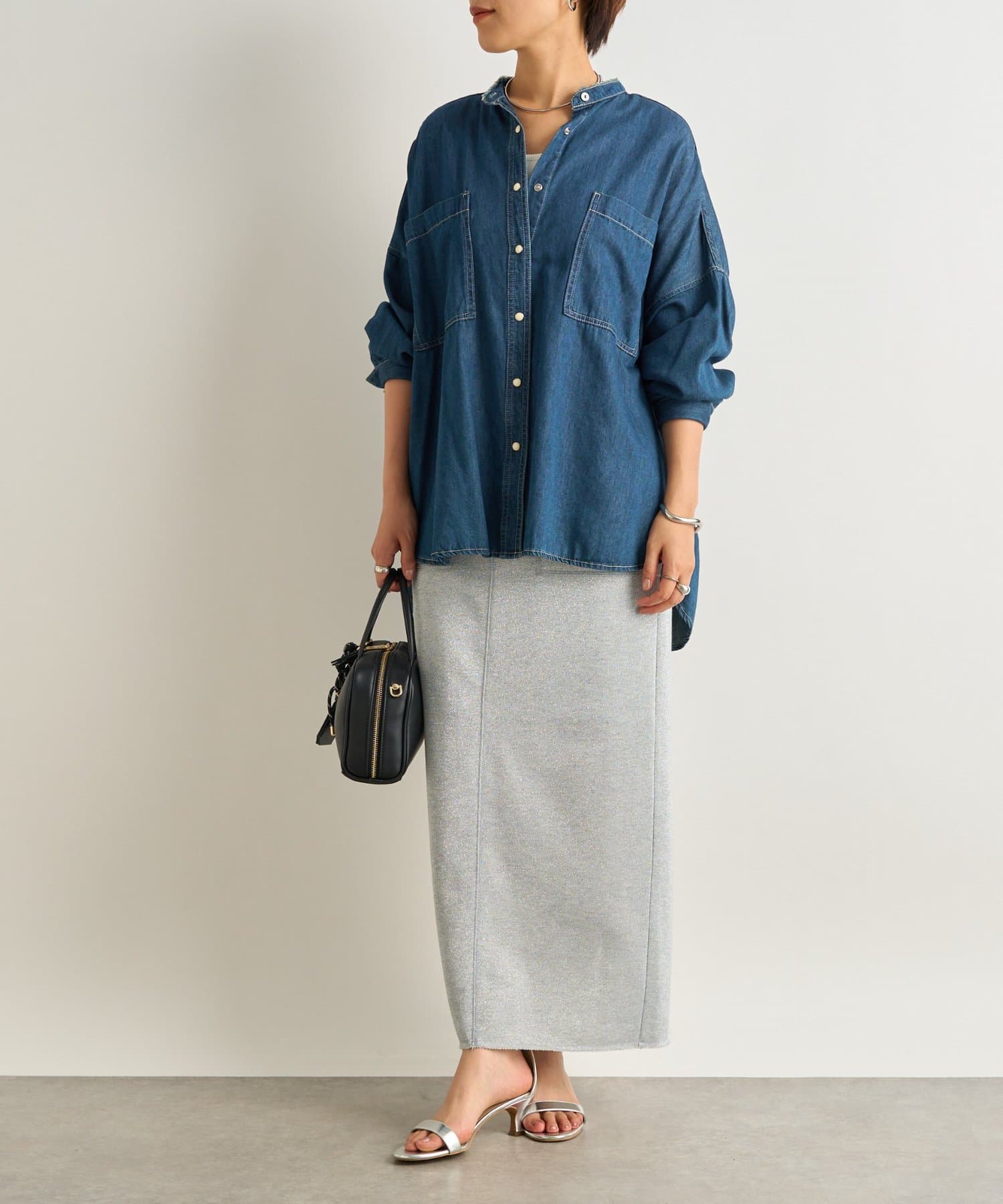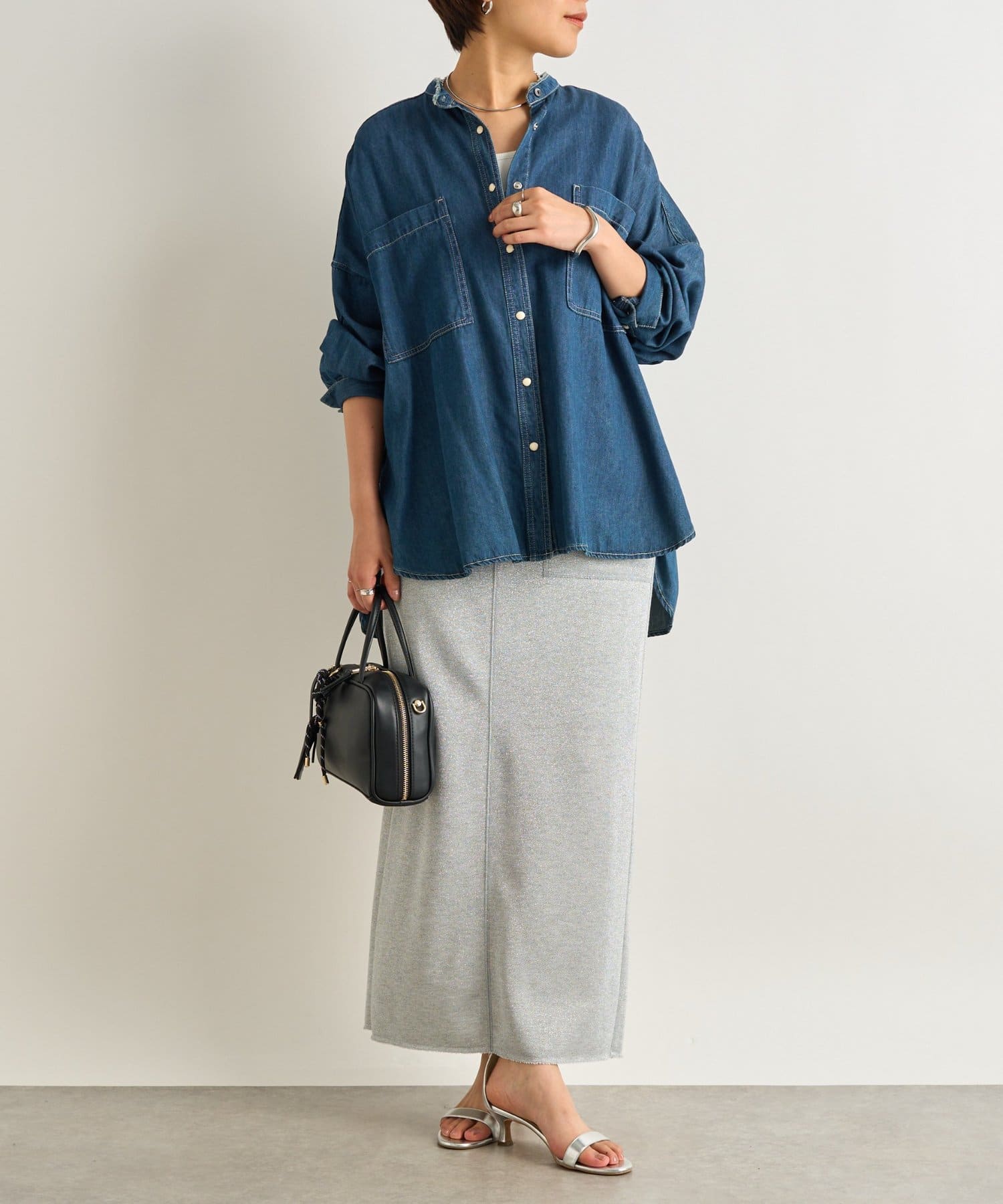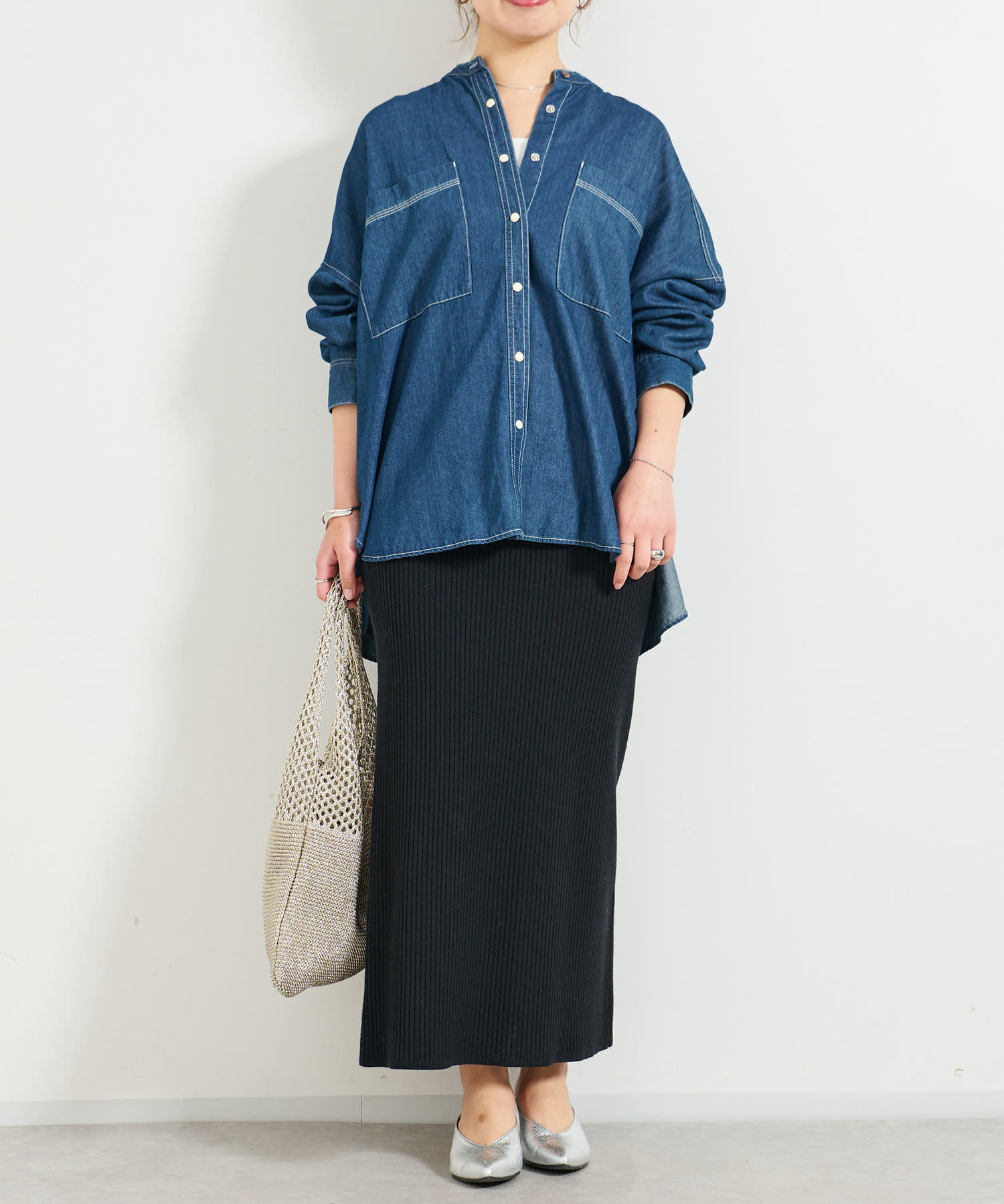 きれい見えするデニムシャツなので大人っぽい着こなしができます。