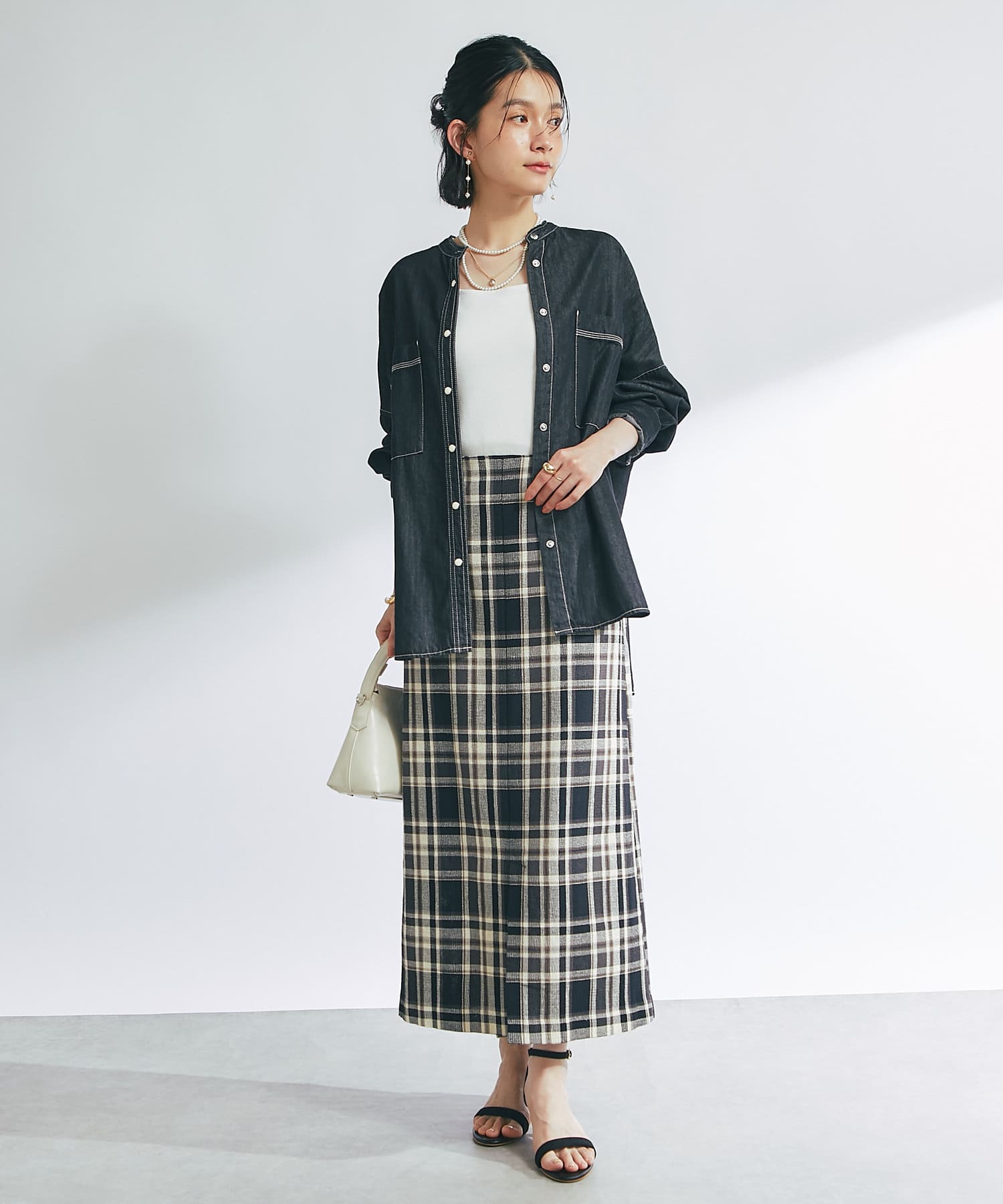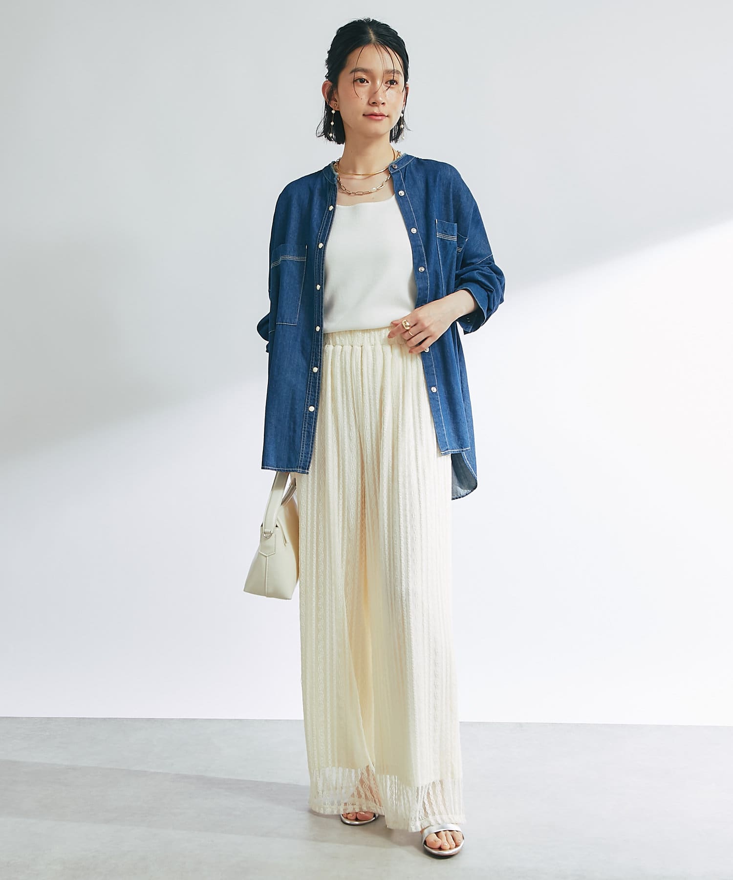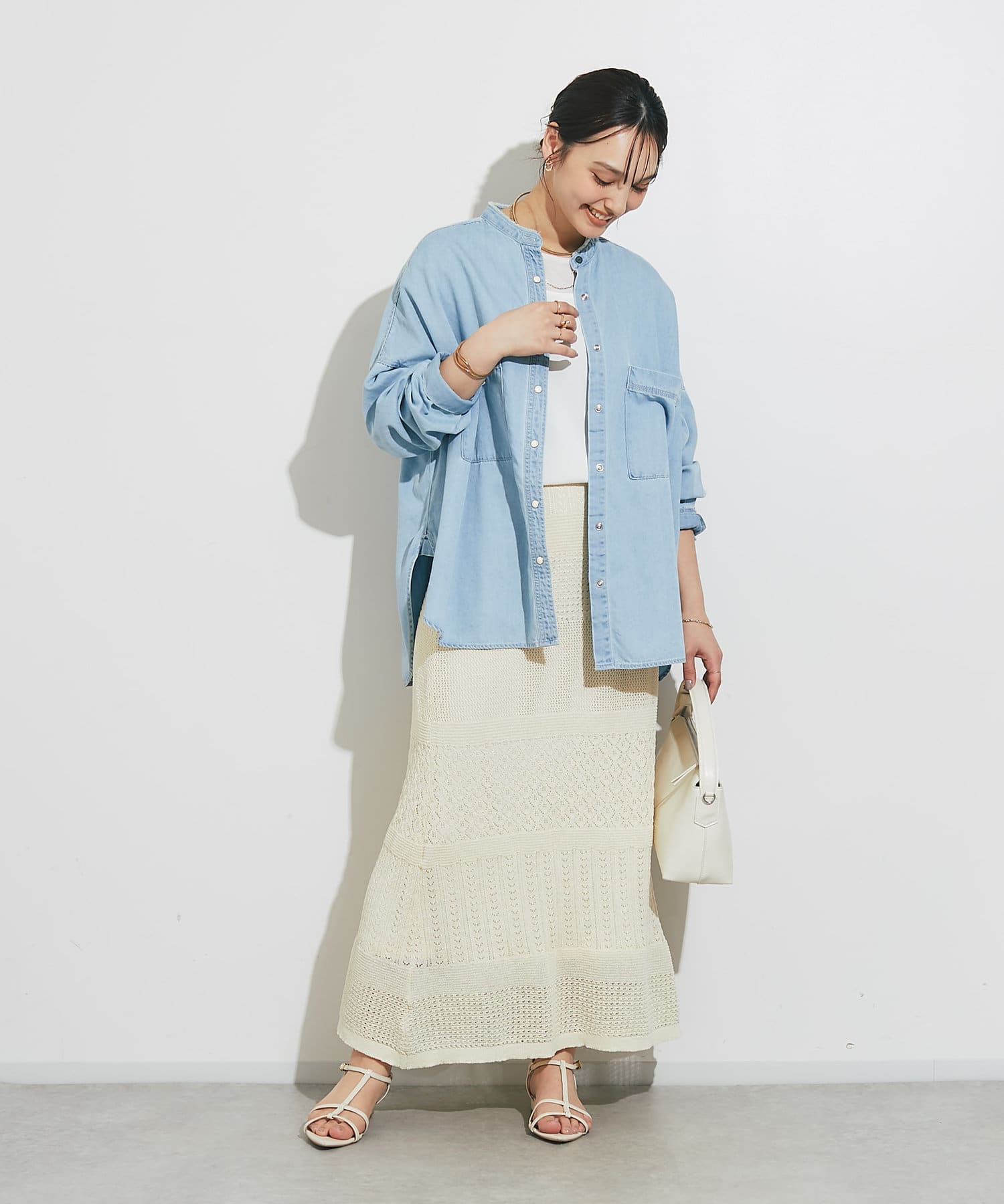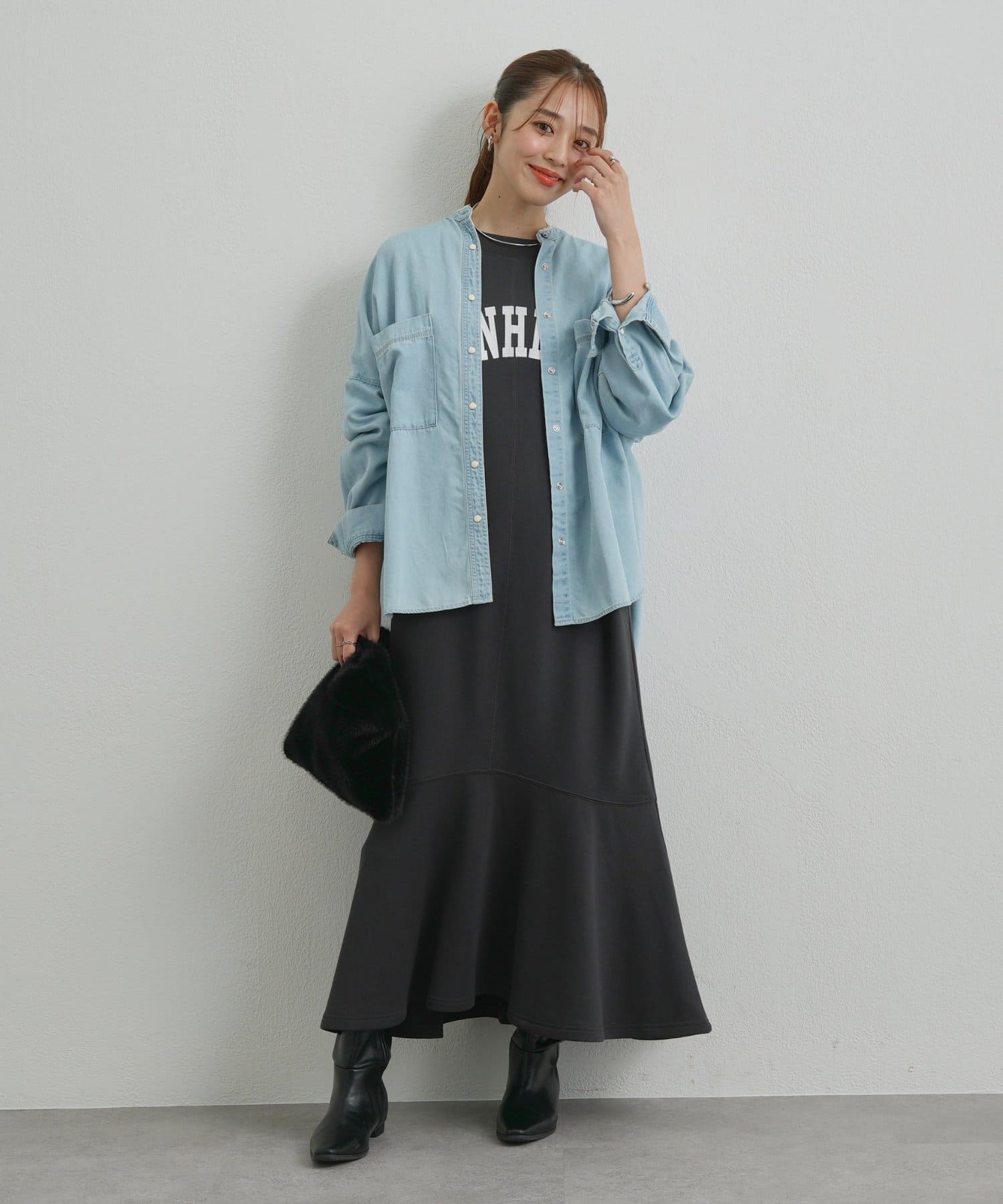 きれい見えするデニムシャツなので大人っぽい着こなしができます。